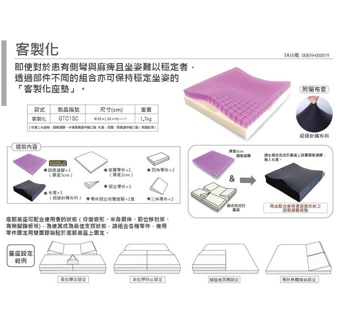 ◆ 透過部件不同的組合亦可保持穩定坐姿的 客製化座墊