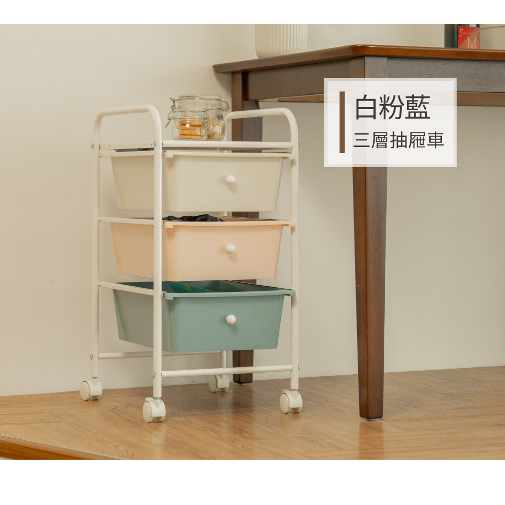【ikloo】輕色系三層收納抽屜車(白/粉/藍) G184