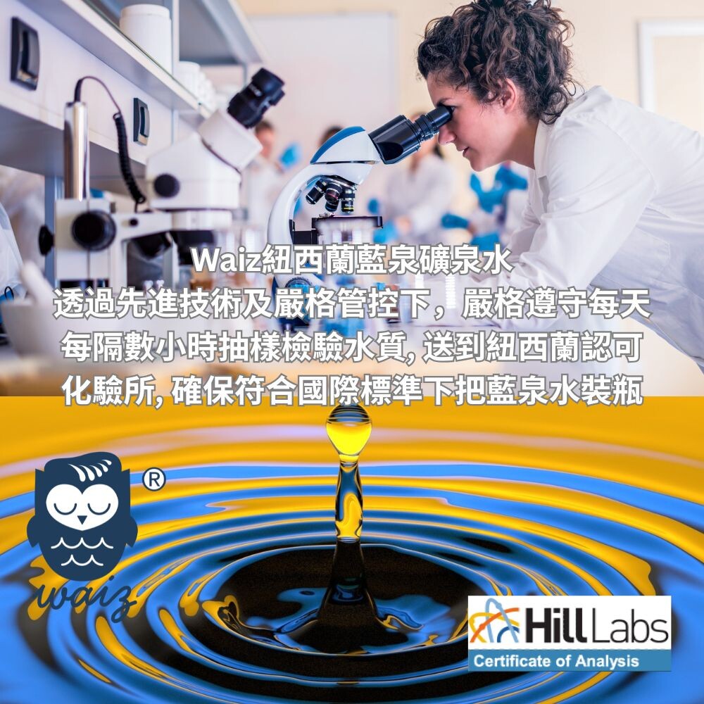 Waiz獲得多項國際認證,包括HALAL清真認證,BSI ,GMP及HACCP管理認證。 Waiz ph值為7, 溶解性總固體為117, 屬含豐富礦質和口感温純的中性水.