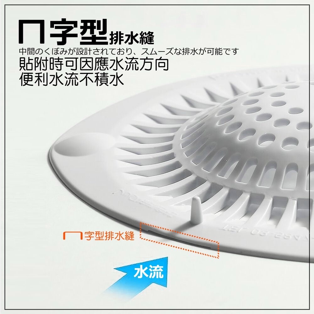 ■ 使用時凸面朝上,將帽狀阻毛過濾器背面的吸盤,平壓吸附於排水孔蓋上