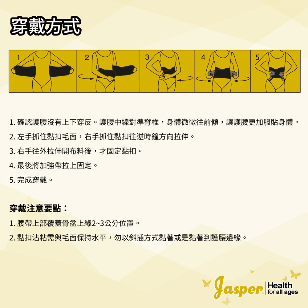 ※護具產品的彈力、壓力會隨穿戴時間及使用頻率遞減,為確保產品功效達最大發揮,建議您定期更換護具,穿戴如有不適,請立即停止使用,詢問專業醫生。