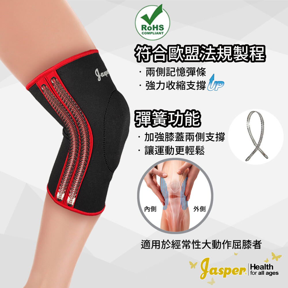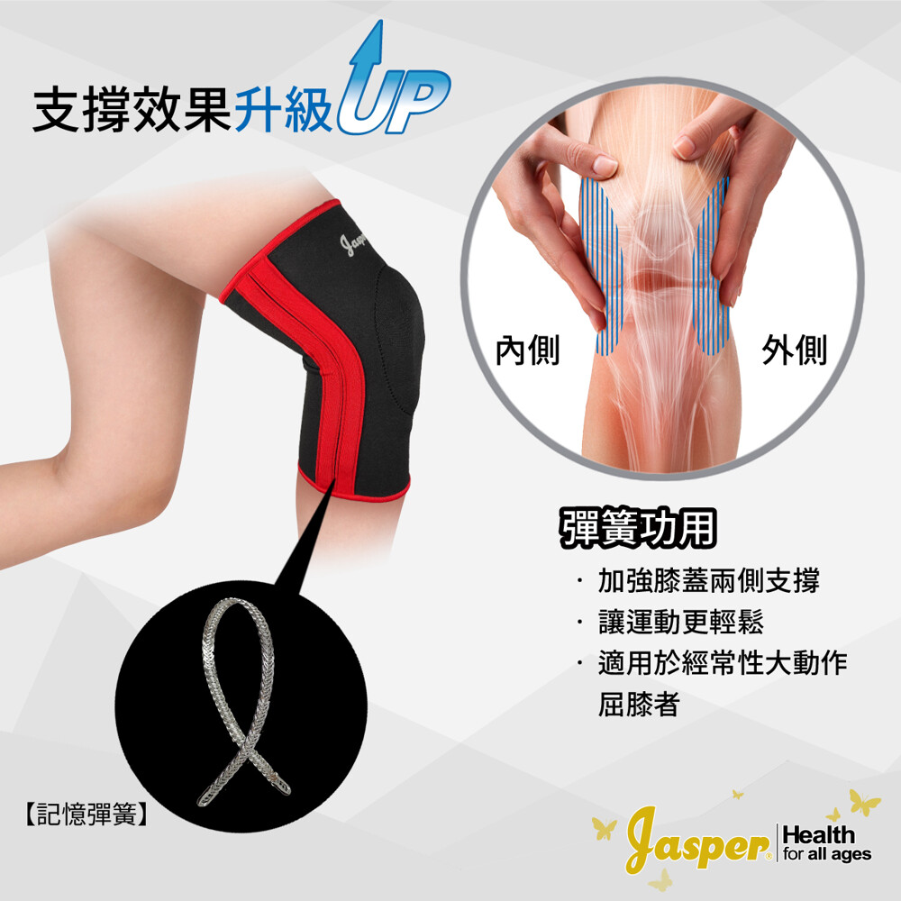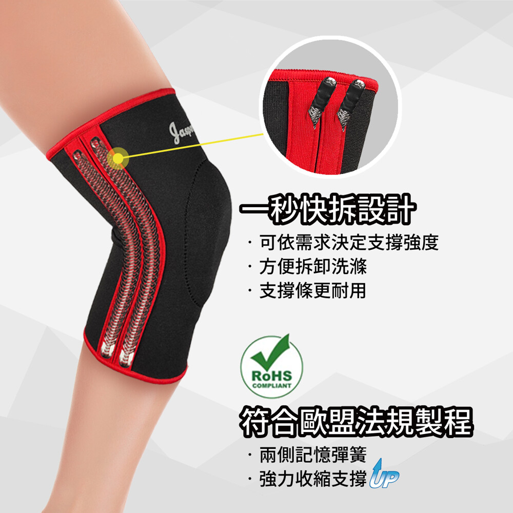 • 護膝兩側各有2彈簧支撐條,加強護膝支撐性,輔助彎曲動作。