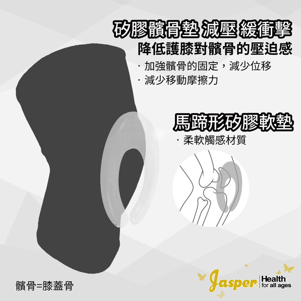 • 馬蹄形矽膠髕骨墊,可有效穩定支撐髕骨。