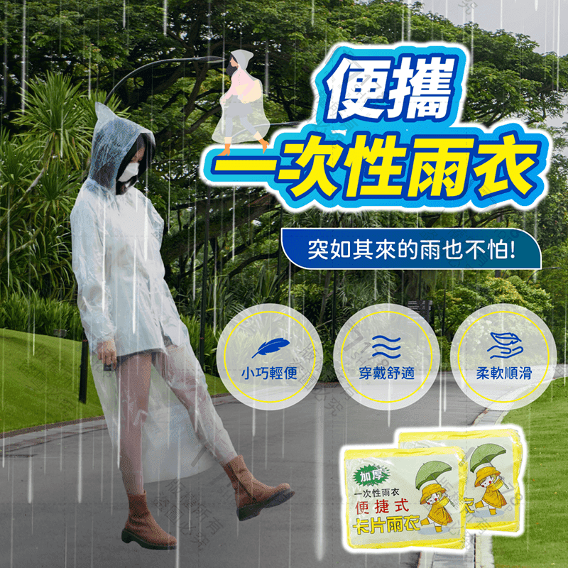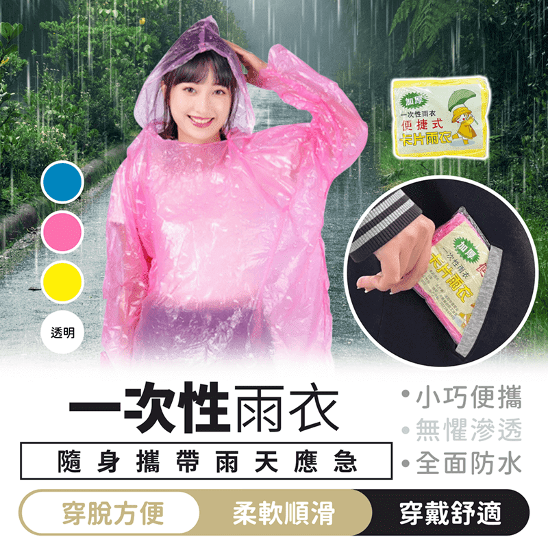 就讓小巧輕便的一次性雨衣陪伴您各種旅程吧!