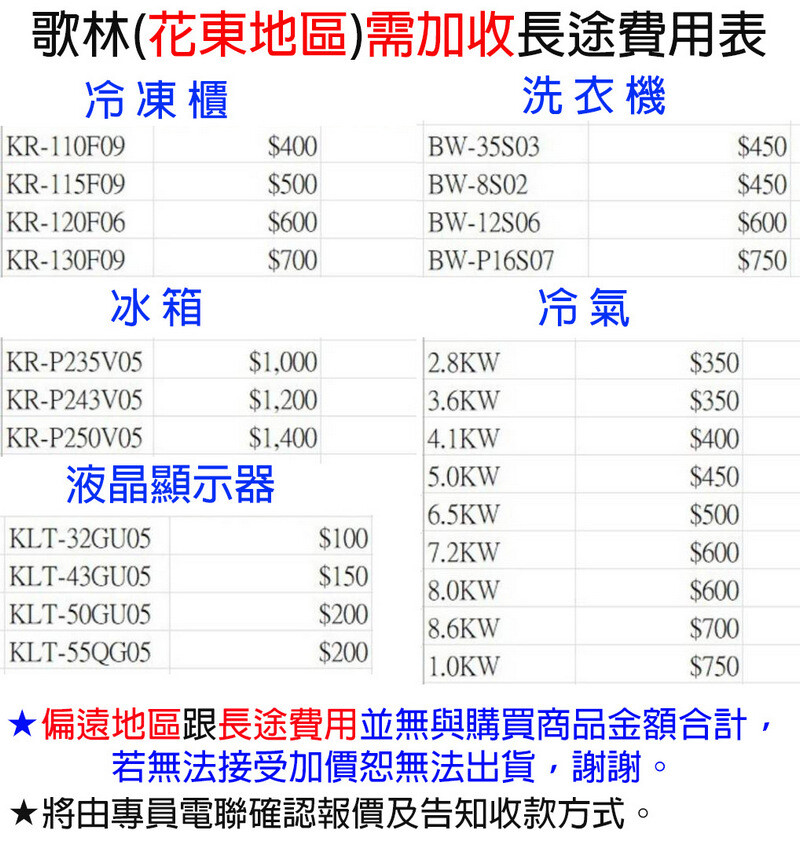 ◎大型家電為專車配送出貨,廠商收到訂單後(不含假日),將有專人與您聯繫確認訂單資訊及環境尺寸評估等(前置作業),請務必保持電話暢通,若無法聯繫將無法安排出貨,則影響配送時間