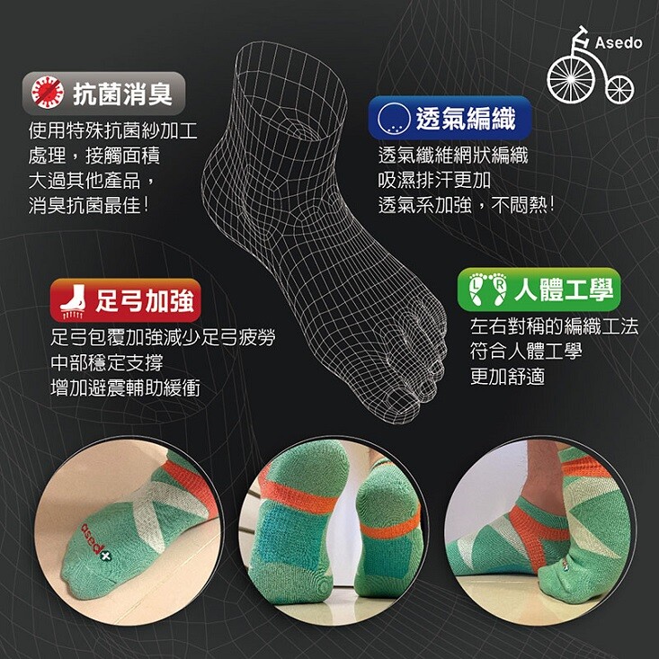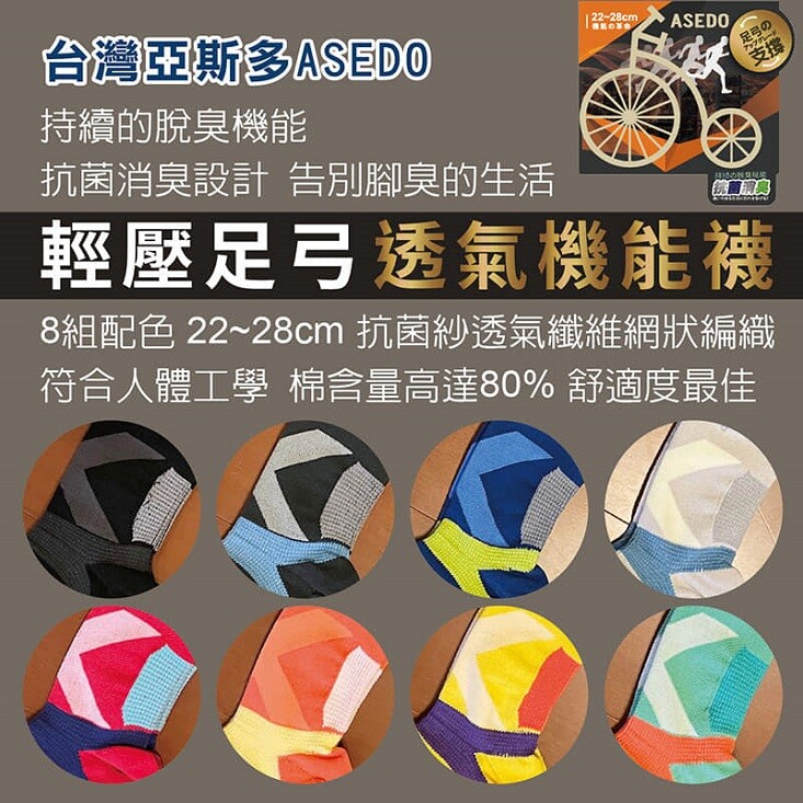 *品名:亞斯多輕壓機能足弓抗菌除臭襪