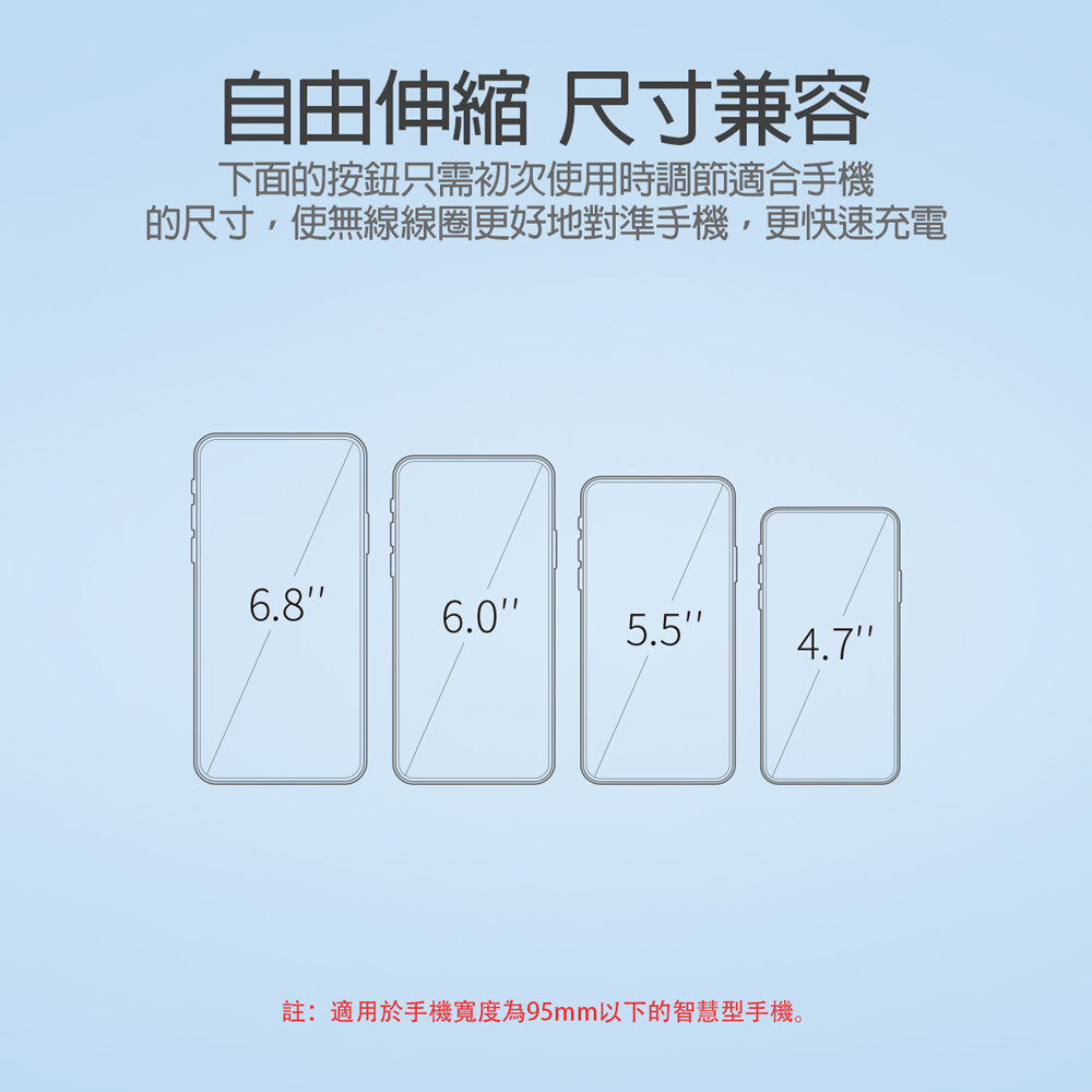 ● 適用55-92mm的智慧型手機