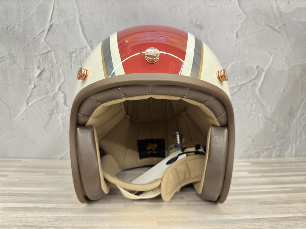 新品MERLIN以清爽輕盈的色調,加上優雅的英式復古風格和諧共生,新開發的方形極細版邊條,柔質可可色皮革,搭配最親膚的布料內襯,首創紅銅色雕刻釦鐶點綴,可調式乳白色頤帶,金屬賽車等級安全排釦,處處細節皆與眾不同,演繹專屬您今年春夏的模樣。