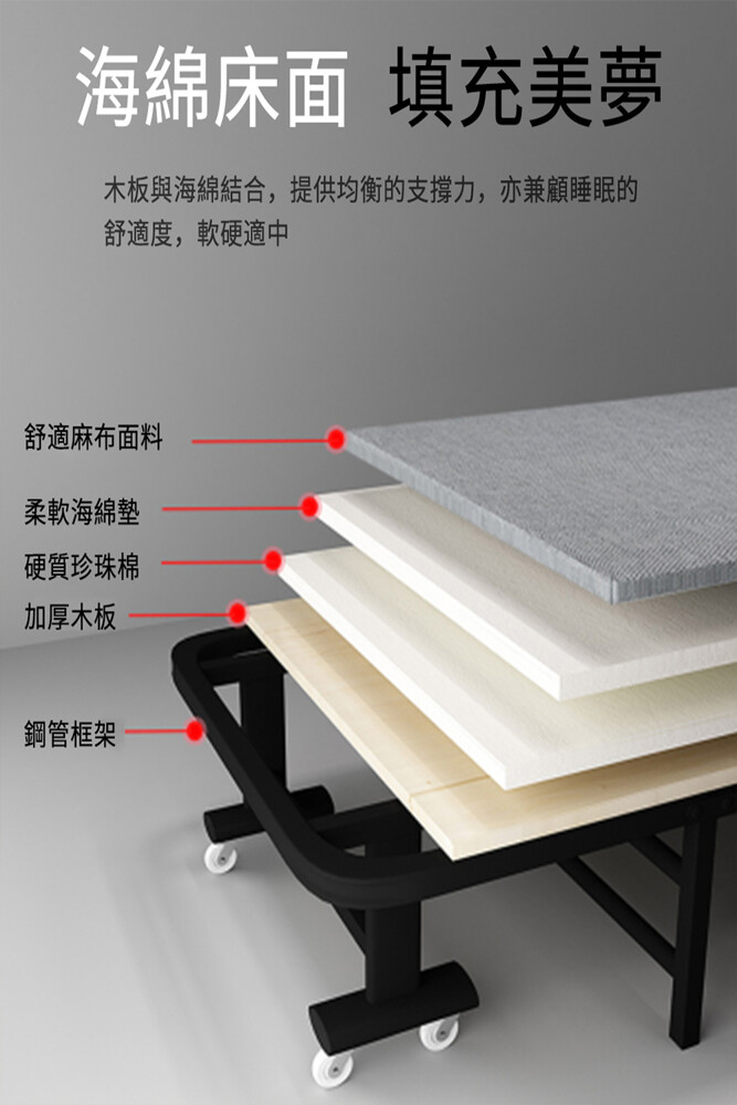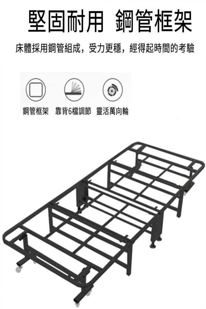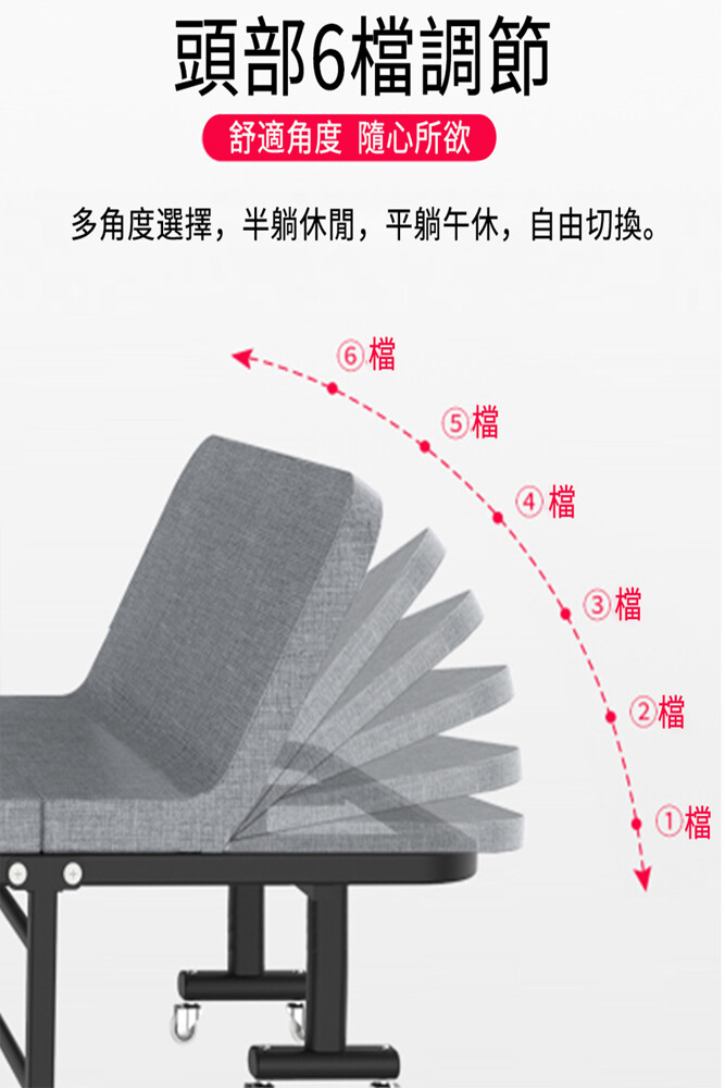 豪華款折疊床 摺疊床 午休床 單人床 行軍床 陪護床 看護床 露營床頭部六檔調節 360°萬向輪