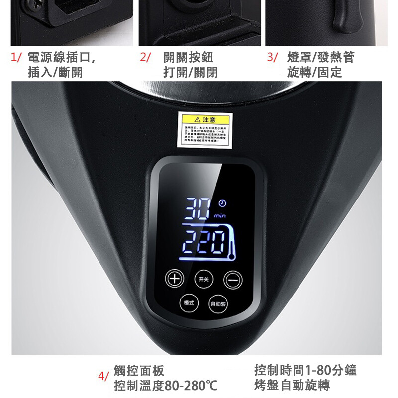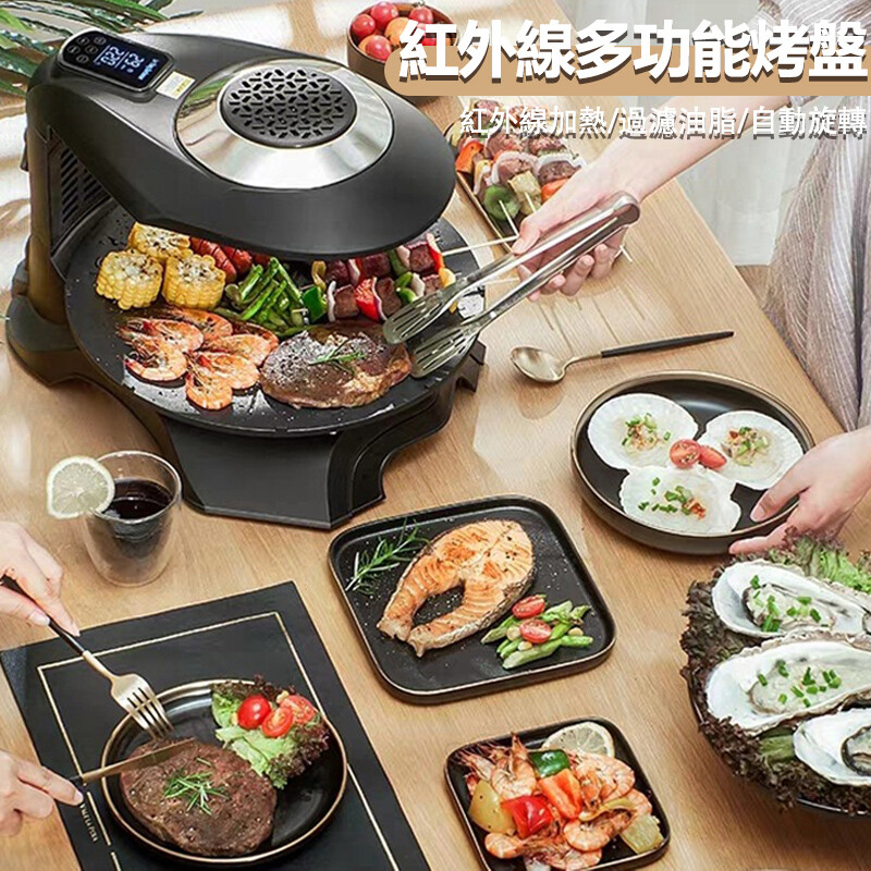 電烤盤 自動轉無煙電燒烤爐 3D 紅外線烤爐 LCD液晶顯示 燒烤盤 電烤爐 烤肉爐 烤肉盤
