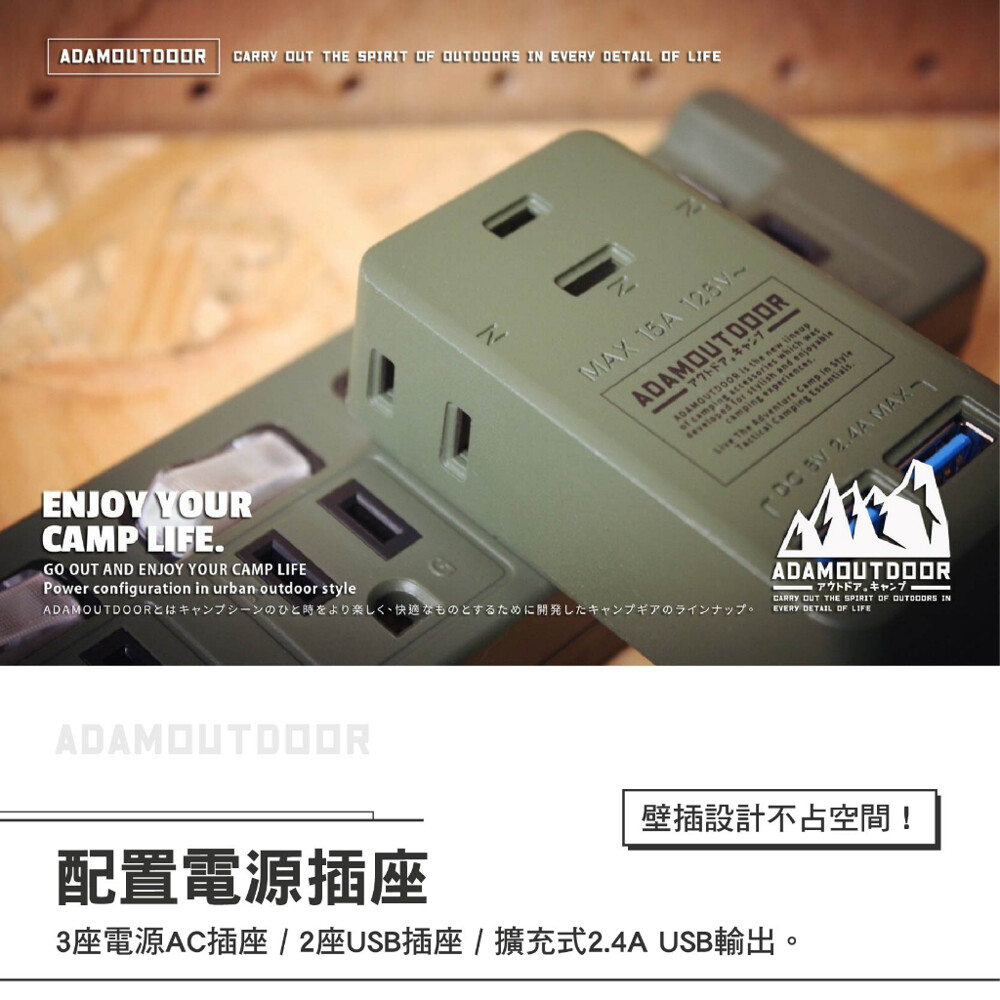 #3座擴充USB #延長線 #ADPW-CE232U11 #AC插座 #USB插座 #逐露天下 #露營 #露營用品