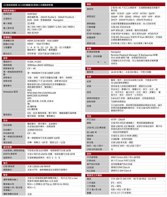 【NVR7832已停產,會以款NVR6832E出貨替代】
