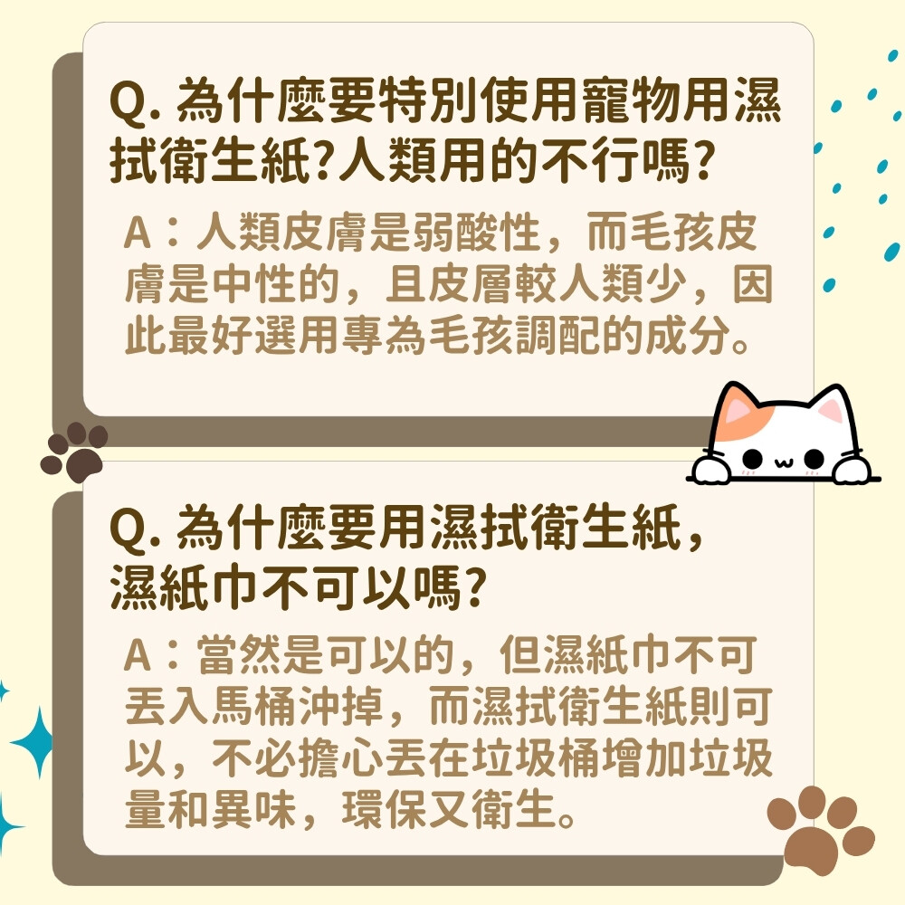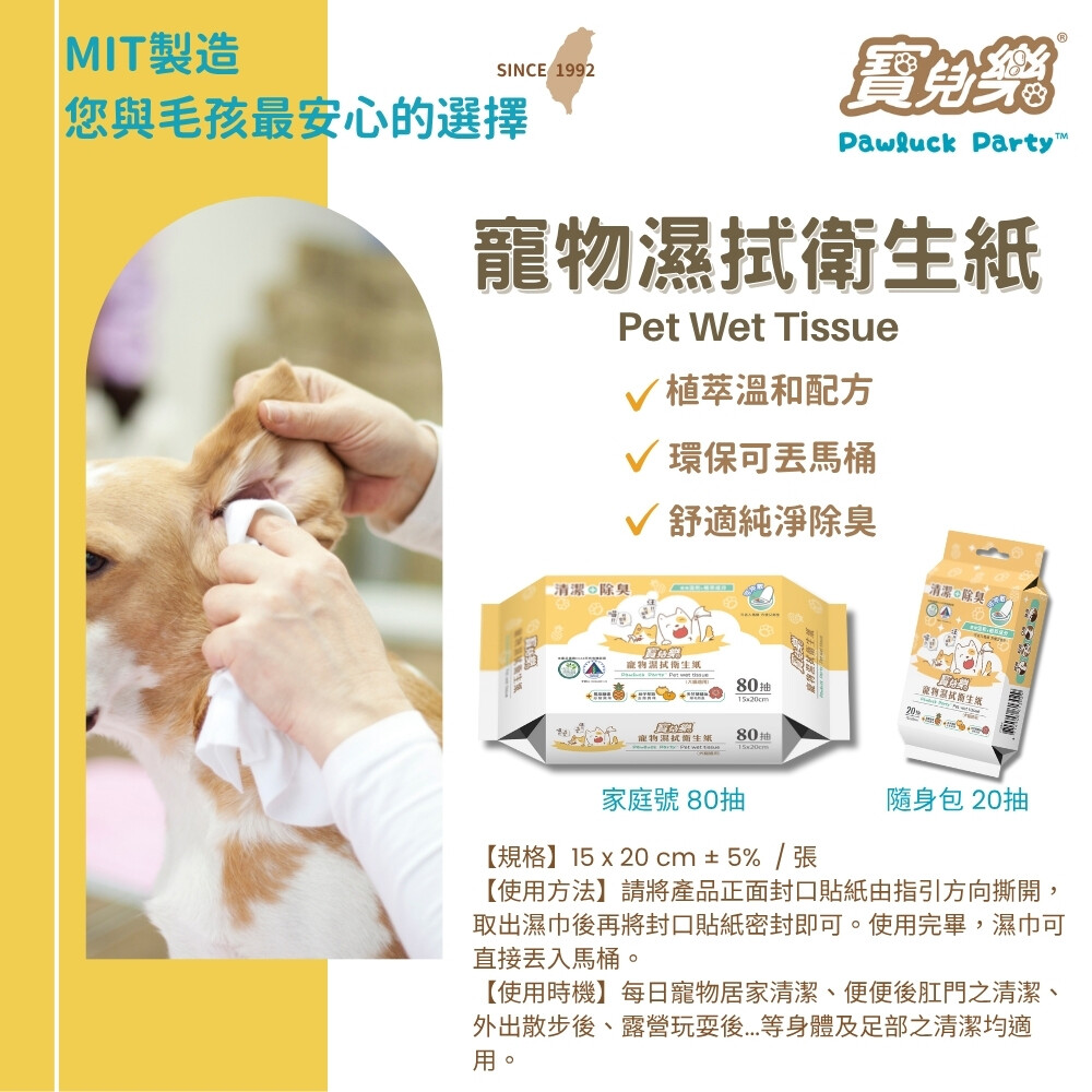 【用 途】: 每日寵物居家清潔、便便後肛門之清潔、外出散步後、露營玩耍後...等身體及足部之清潔均適用