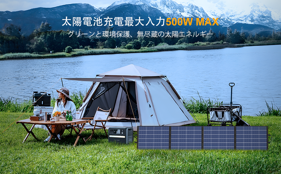 ✔ 太陽能充電(MPPT 最大 500W)— 在戶外環保充電,隨時補充電力