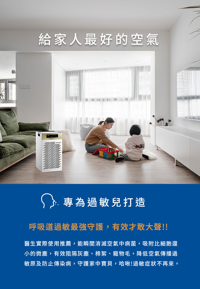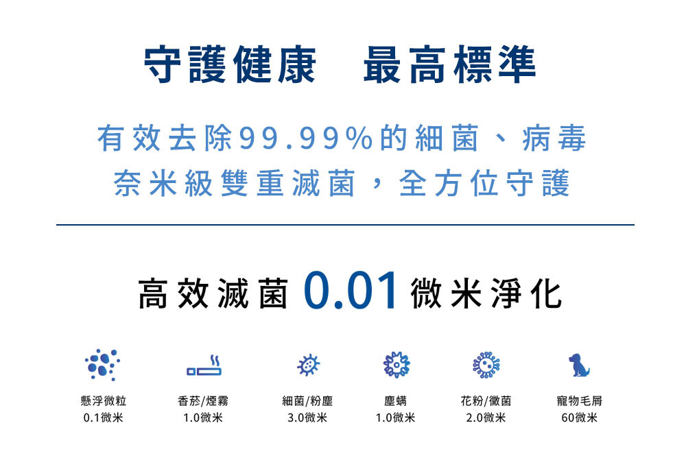 ◆雙電離滅菌+紫外線UVC,高效抗敏淨化