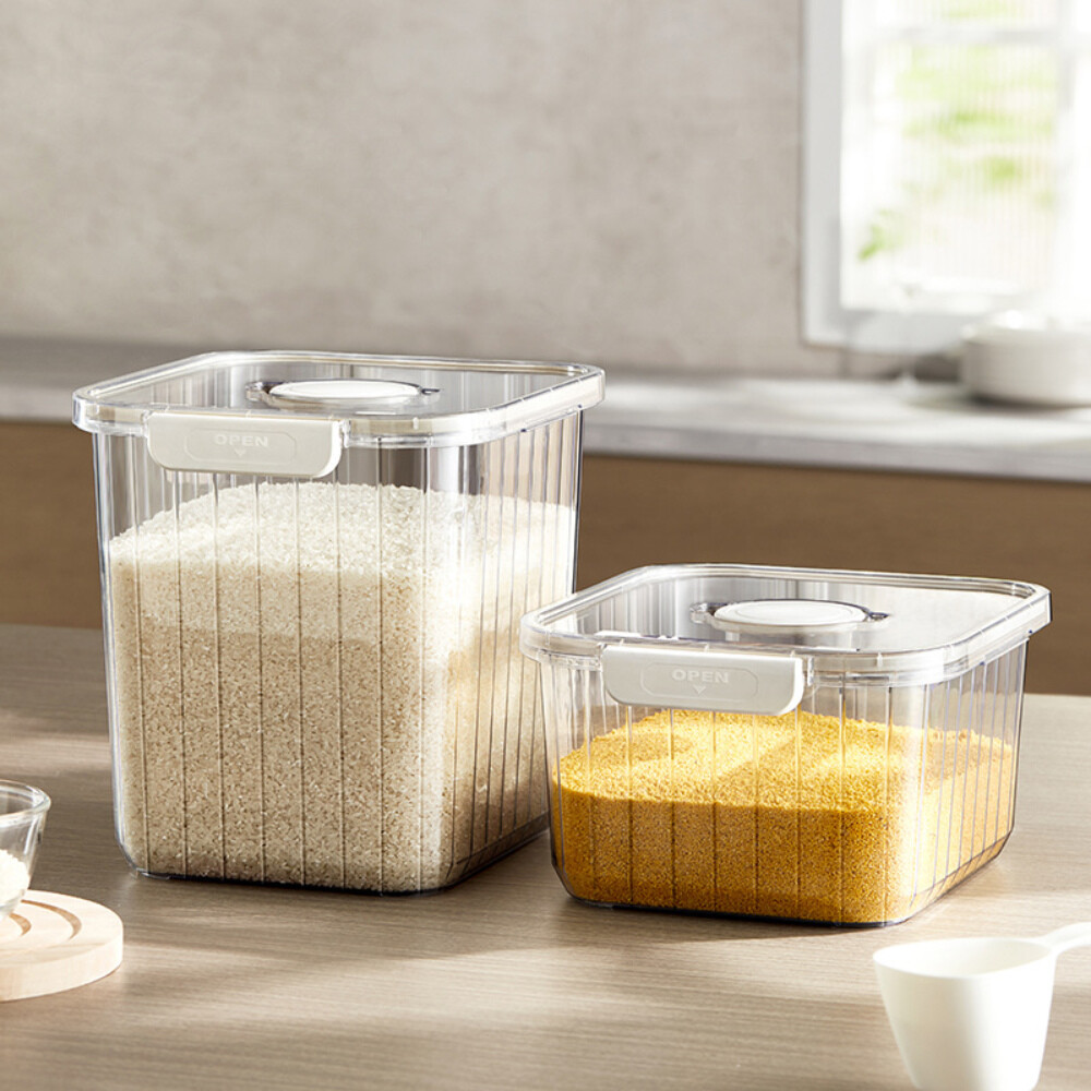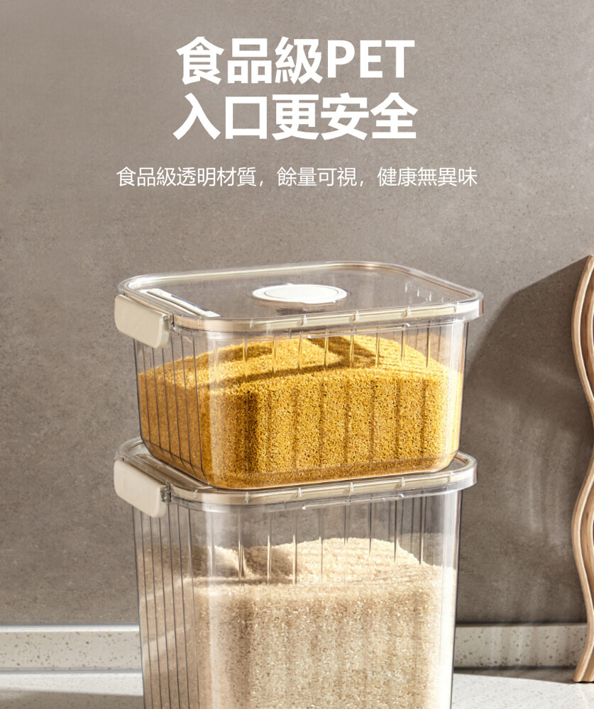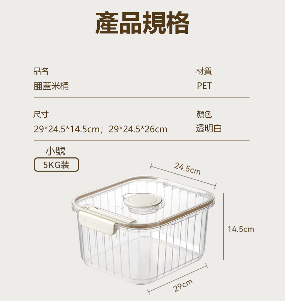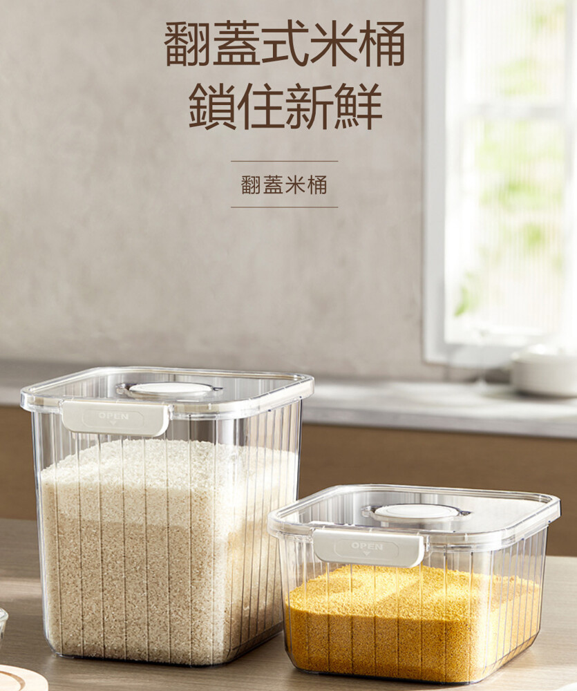 【荷生活】方型PET透明翻蓋式儲米桶 好收納單手開關防潮五殼雜糧桶-小號1入