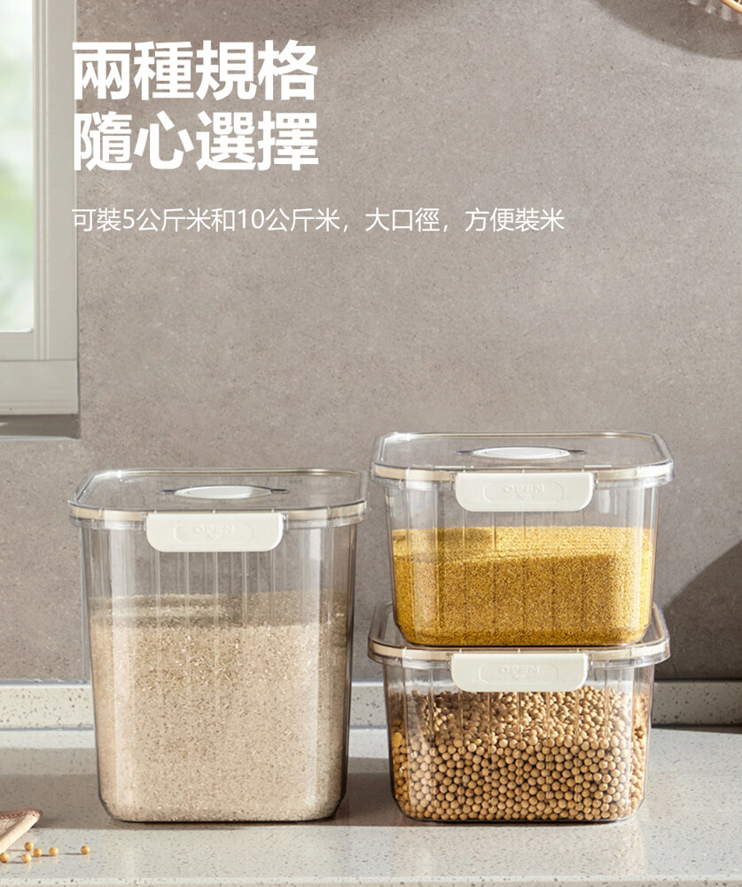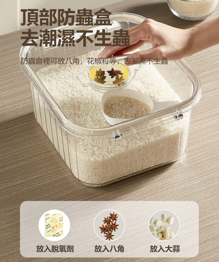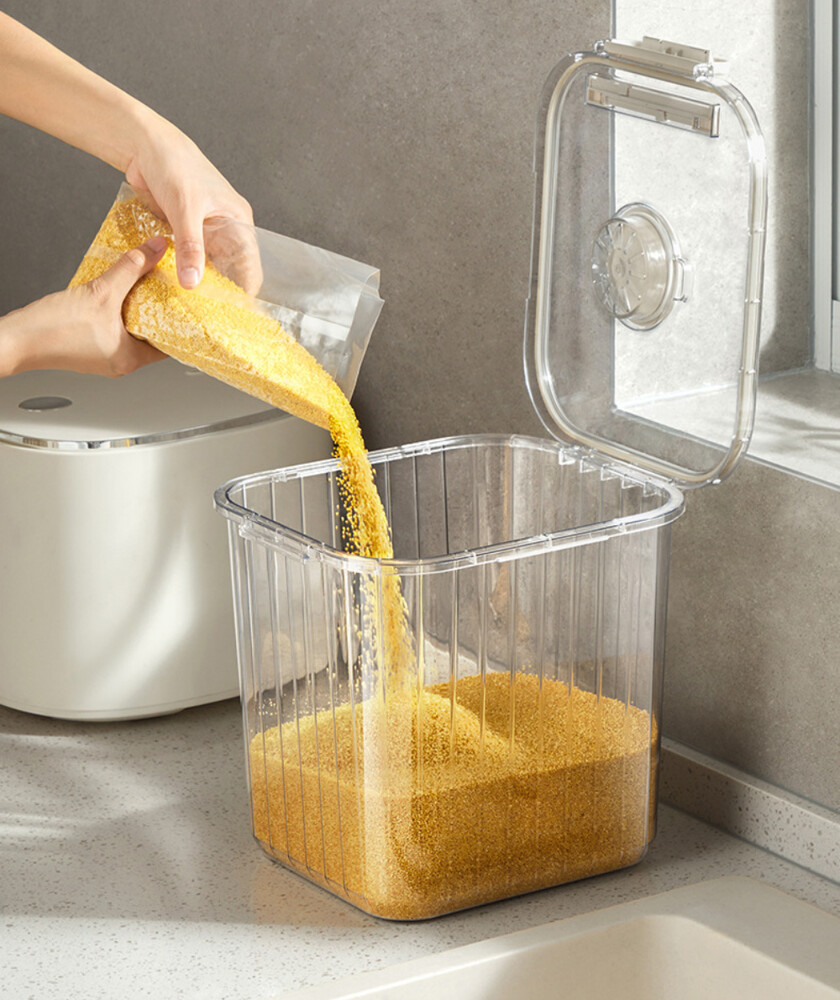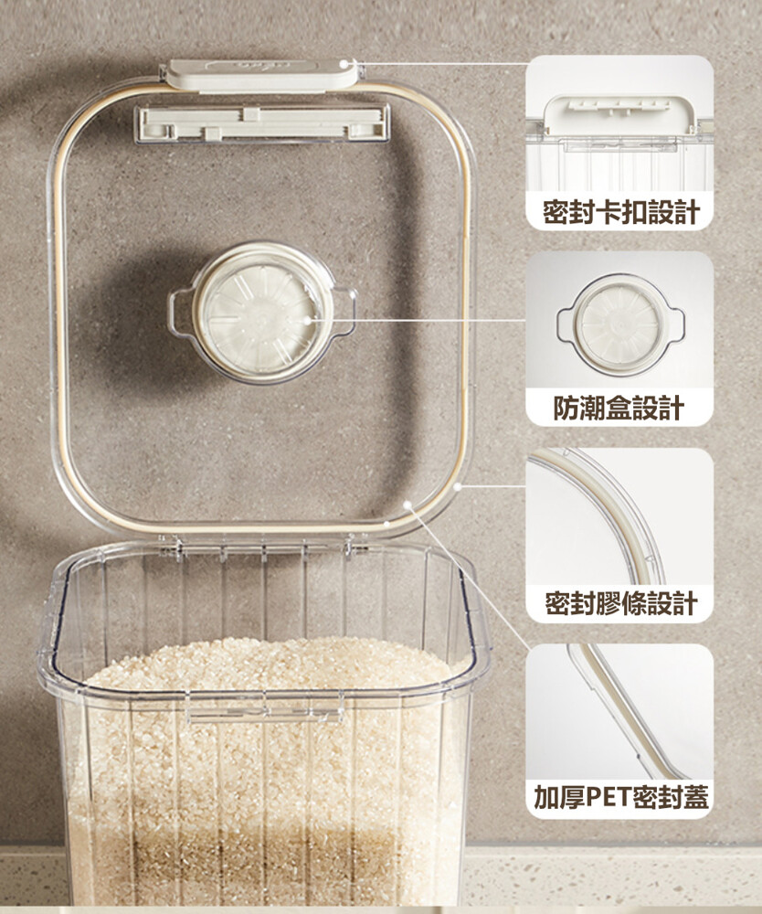 【荷生活】方型PET透明翻蓋式儲米桶 好收納單手開關防潮五殼雜糧桶-小號1入