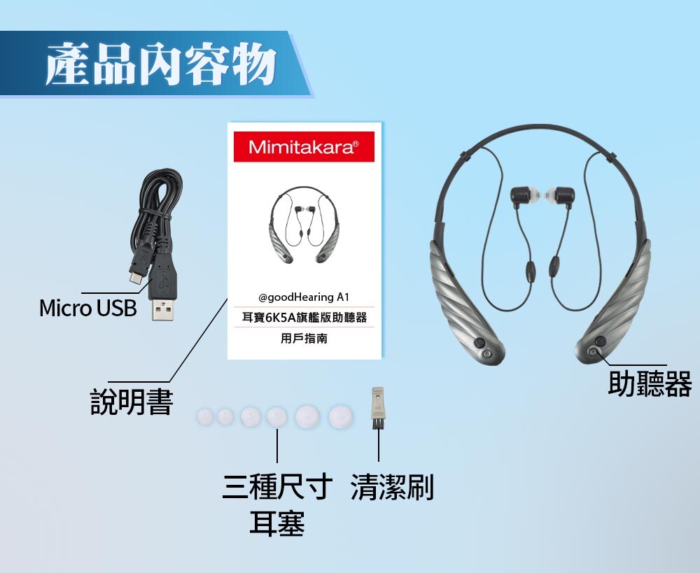 Mimitakara耳寶 6K5A 數位降噪脖掛型助聽器-晶鑽黑(旗艦版)