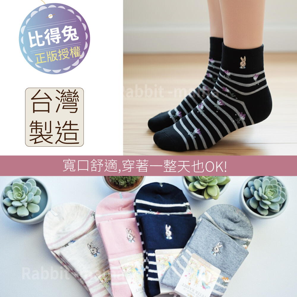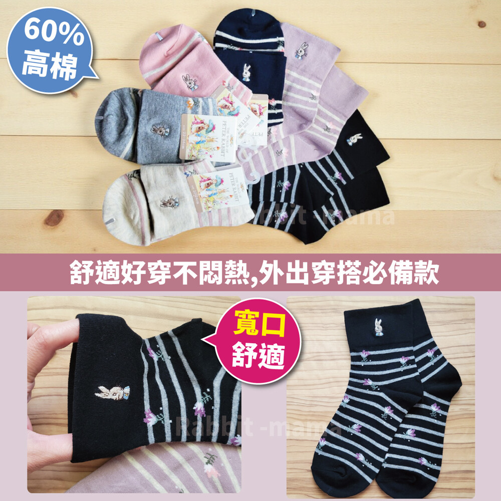 台灣製 彼得兔 細針寬口襪 田園花朵 233高棉質寬口襪 女襪 比得兔 短襪 休閒襪 兔子媽媽