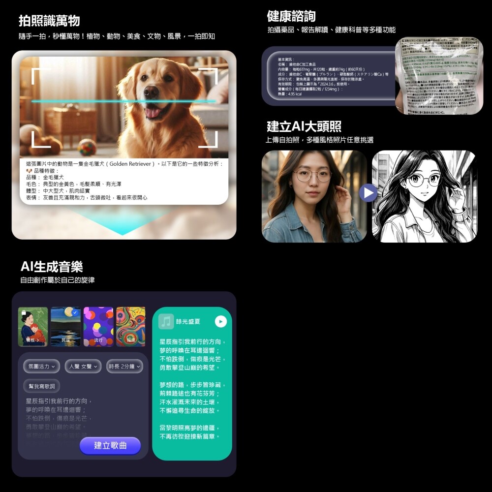 ★ Ai繪圖/照片動起來/錄音/拍照識萬物/作業指導/健康/AI音樂/百科/記帳等
