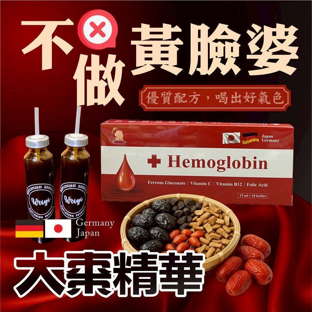 【成 分】:花粉液, 血紅素鐵液, 黑棗濃縮汁, 膠原蛋白液, 刺五加萃取液