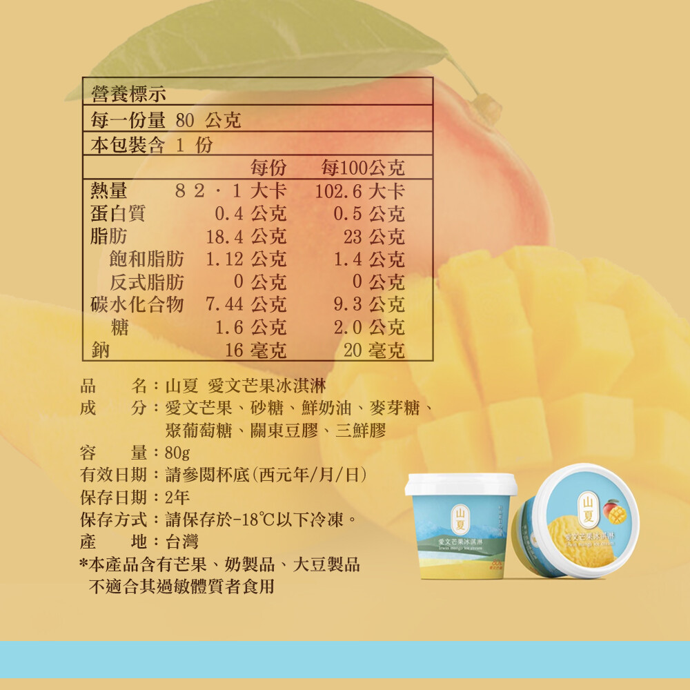 過敏原資訊:芒果、奶製品、大豆製品