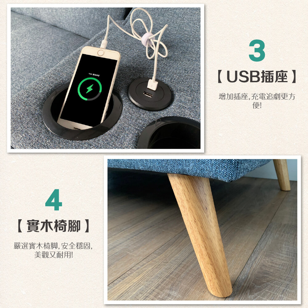 材質:亞麻布、木架、海綿、實木椅腳