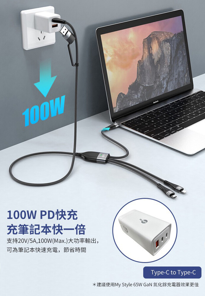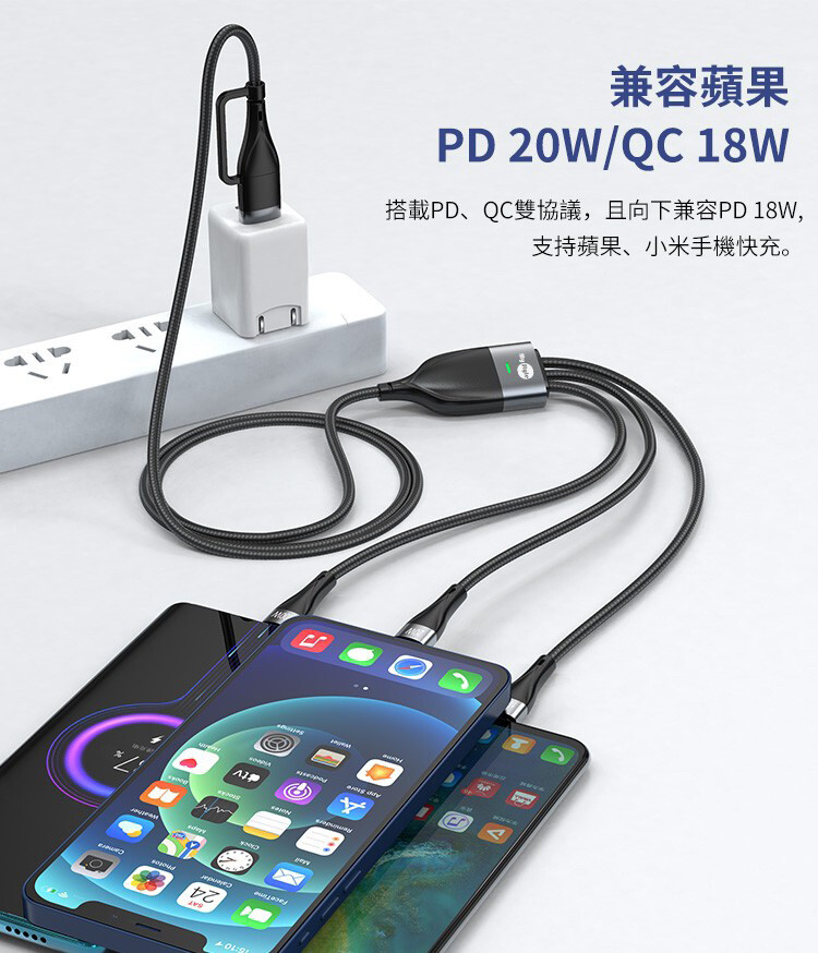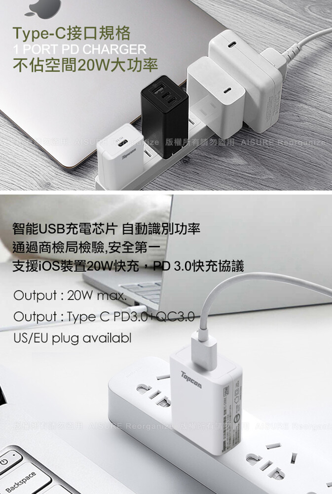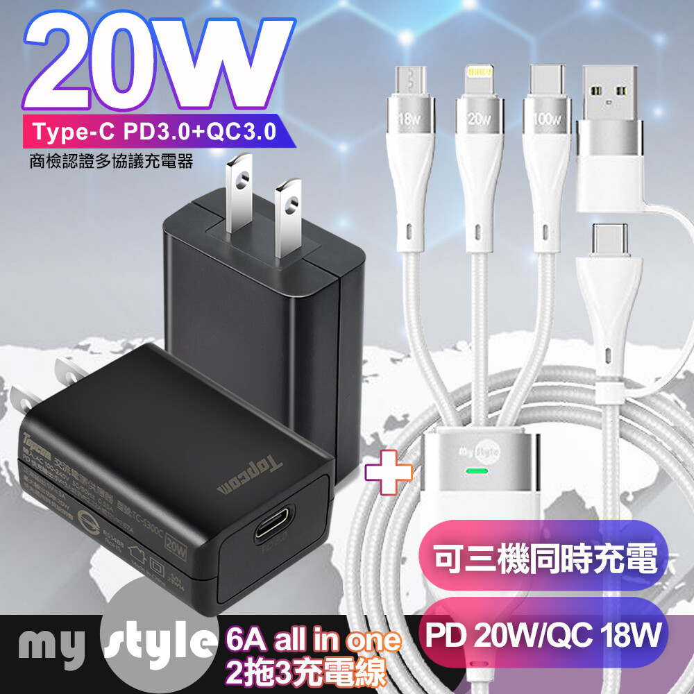 Topcom TC-S300C PD20W黑+MyStyle 二出三 6用型快充線-白