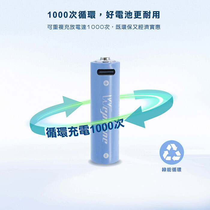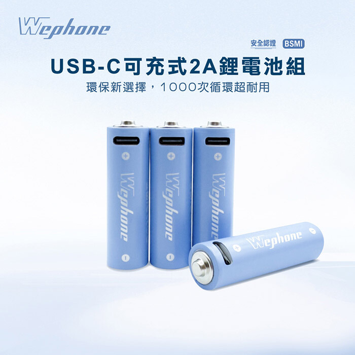 Wephone 3號AA 1.5V USB充電式電池 2475mWh 充電鋰電池(附一對四充電線)