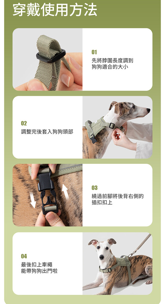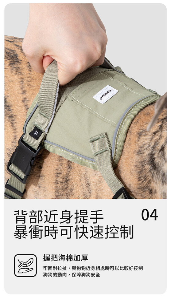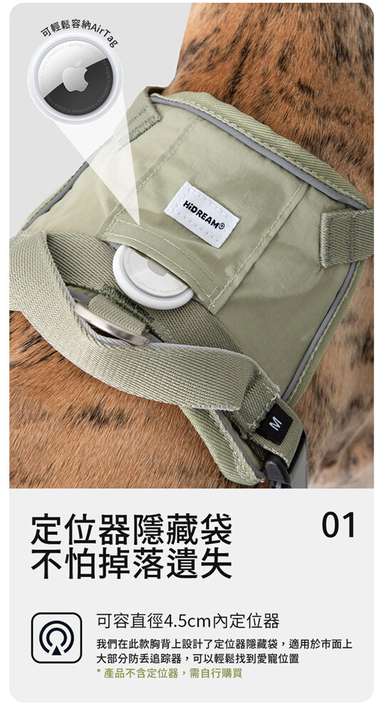 馬鞍頭套快穿設計一套二扣,貼合不勒、磨頸部 防暴衝不傷脖,前胸後背皆有扣環 可搭配延長調節雙頭牽繩 背部提把設計,想跑沒門~~ 牢固耐拉扯,收納袋可放定位器