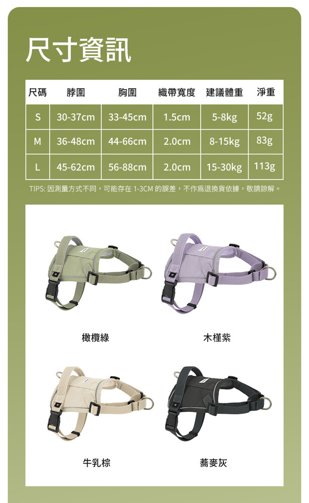 M號 : 脖圍:36-48 cm / 胸圍 : 44-66 cm