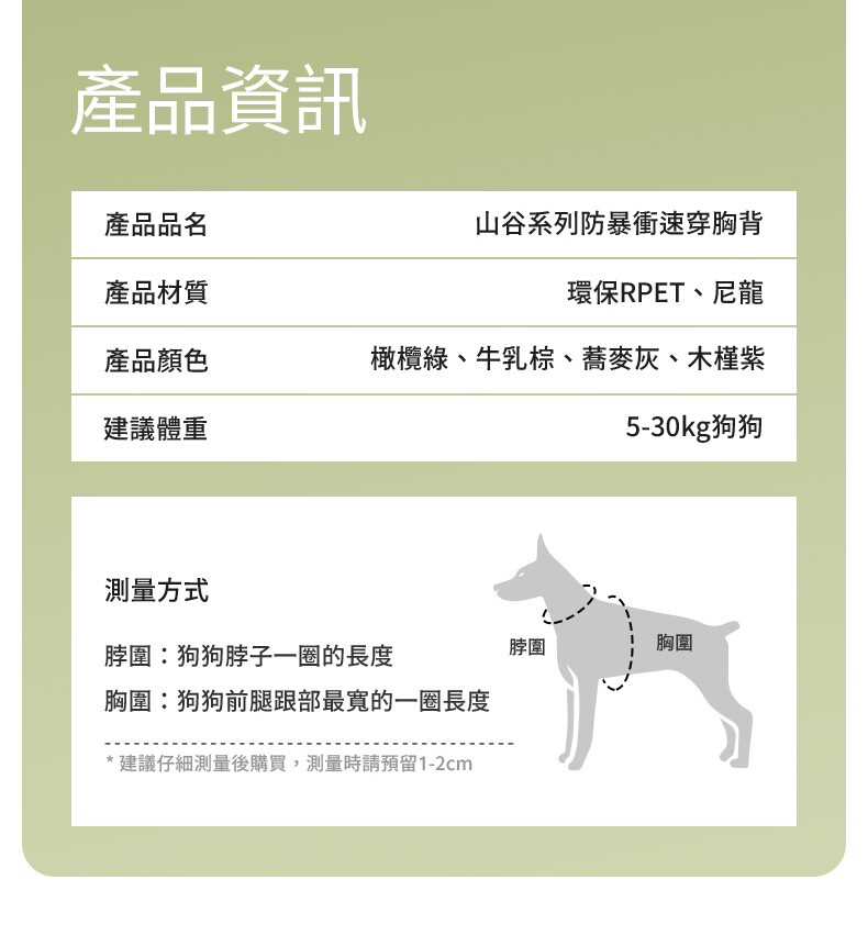 牽繩資訊 : 寬2.0 cm﹔長135 cm