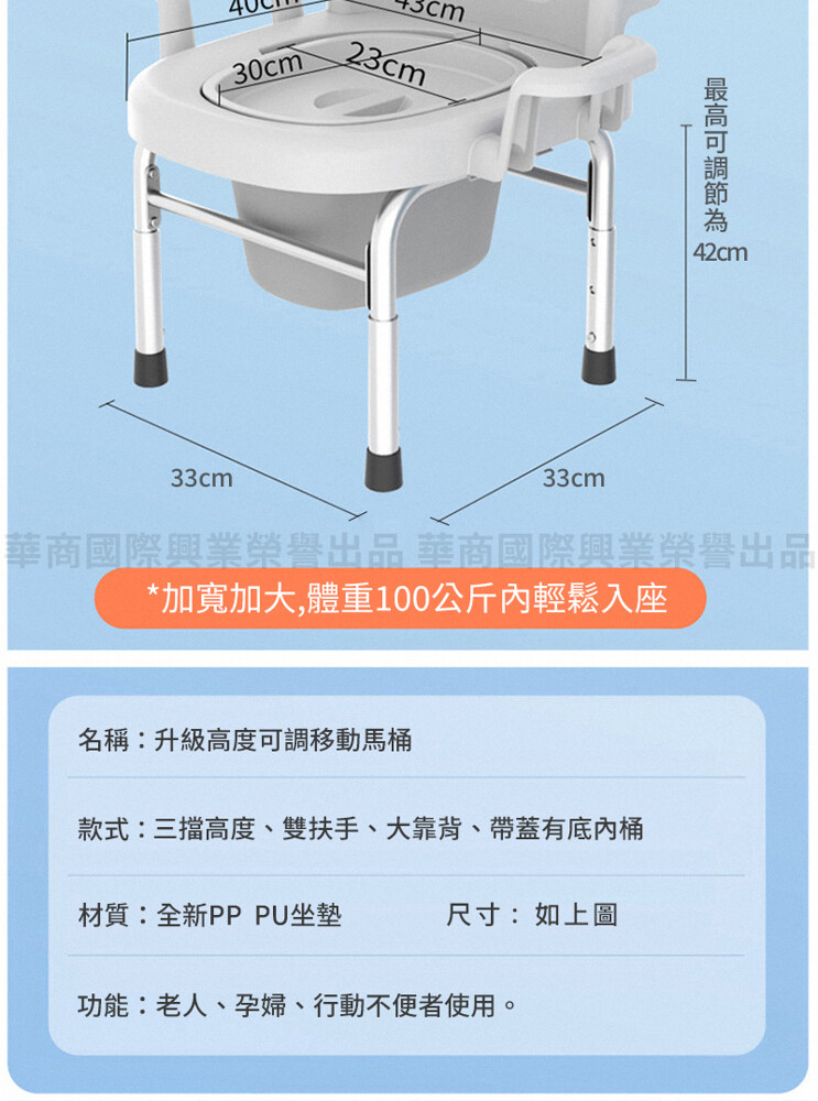 名稱:升級高度可調移動馬桶-穩固安全款