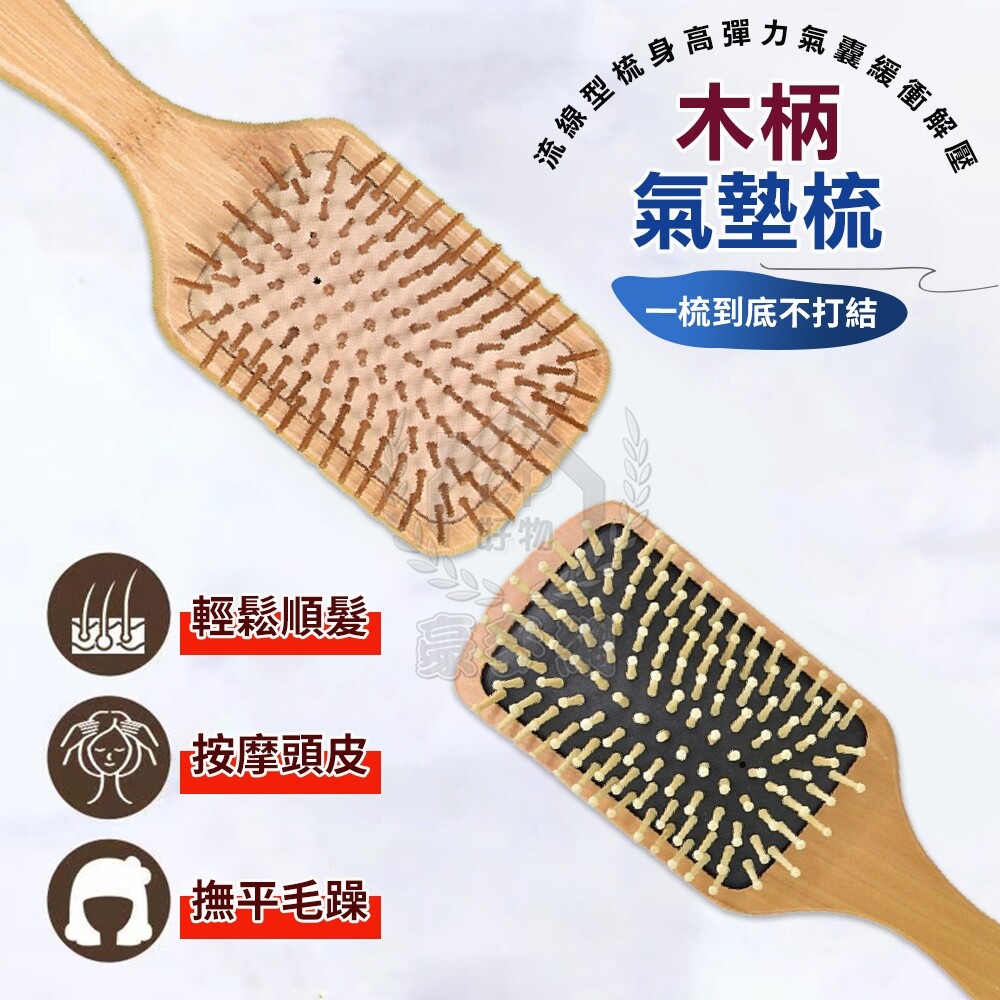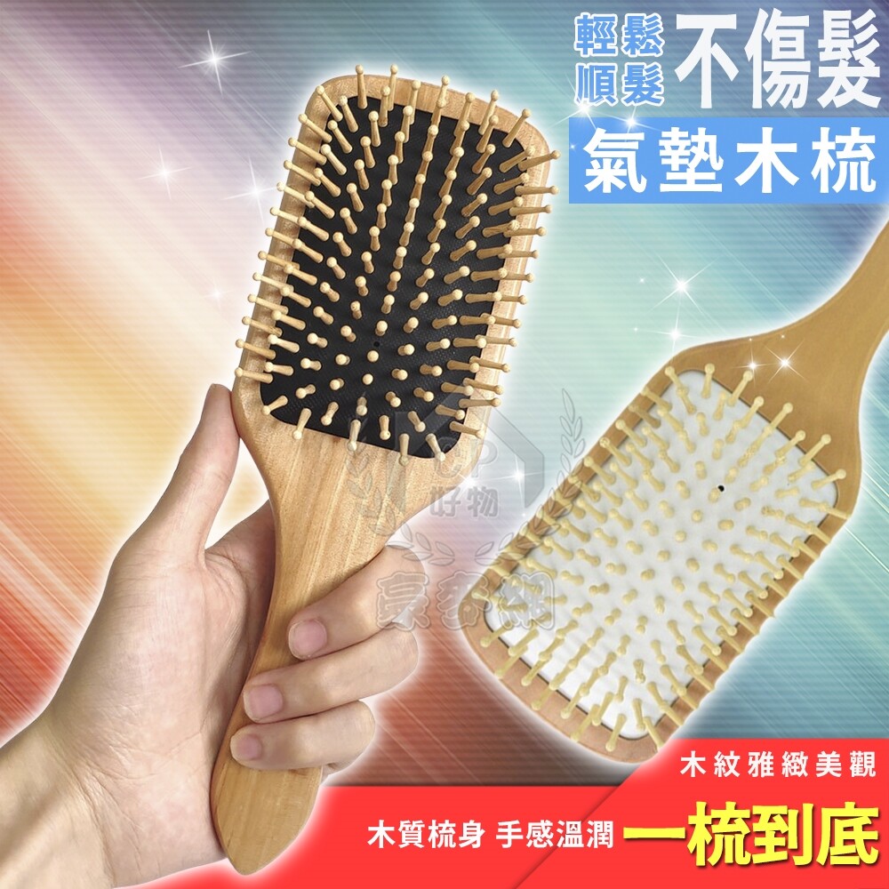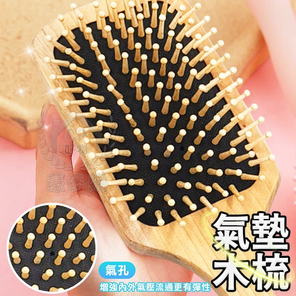 ☆【木質氣墊梳】氣墊按摩梳 美髮梳子 寬齒梳 木柄梳 氣囊梳☆