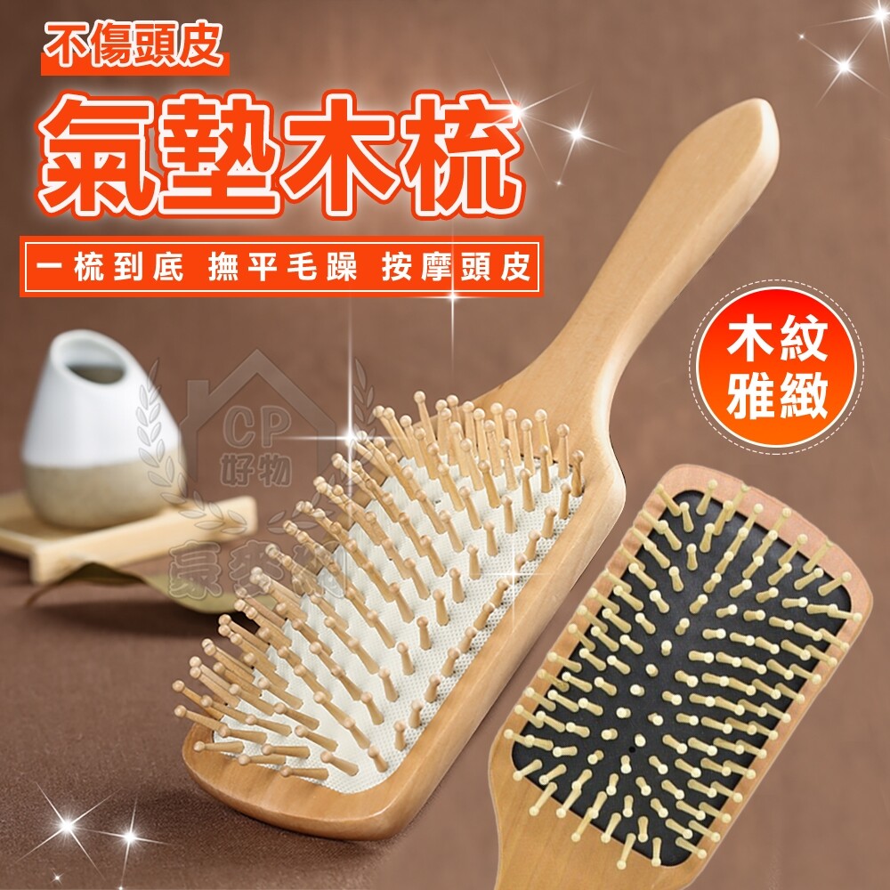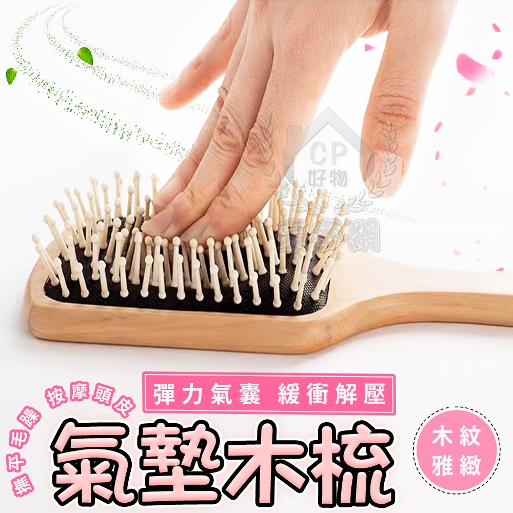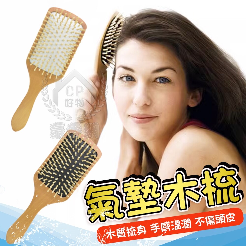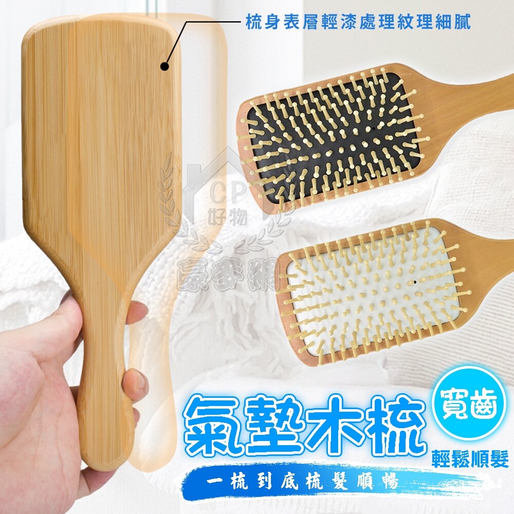 ☆【木質氣墊梳】氣墊按摩梳 美髮梳子 寬齒梳 木柄梳 氣囊梳☆