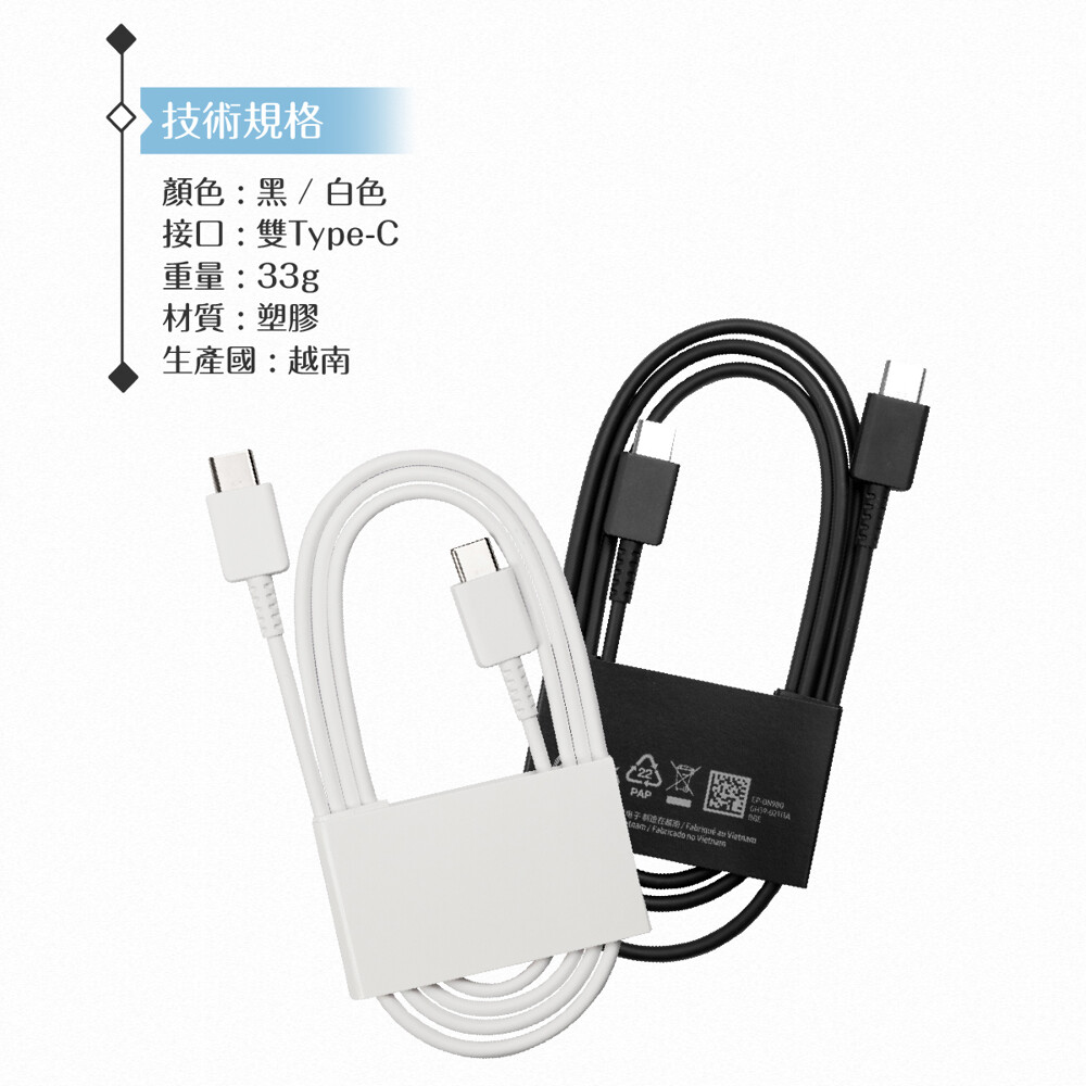 商品名稱:Samsung 三星製造 雙Type-C 快充數據線 ( for S25 S24系列 )