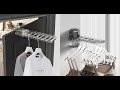吸盤貼或掛扣固定,可直接黏貼牆壁,也可掛扣於櫃子、門板上,一次可掛6支衣架,旅行出差輕便好攜帶,不使用時也能90度摺疊收納,不占空間。