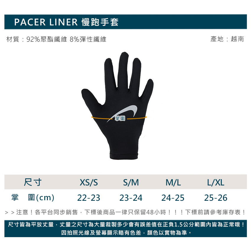 NIKE PACER LINER 慢跑手套-DRI-FIT 訓練 運動「N10105320422S」