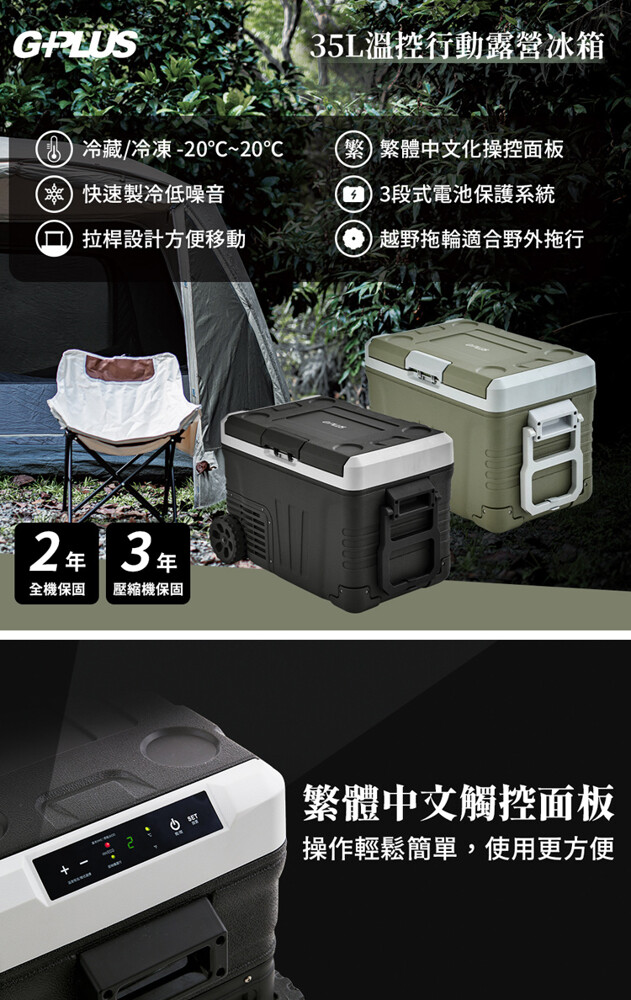 【G-PLUS】溫控行動冰箱 35L GP-MCR01移動式 車載冰箱 全機保固2年 可以家用/野炊/露營 再加送蒸氣掛燙機GP-H001