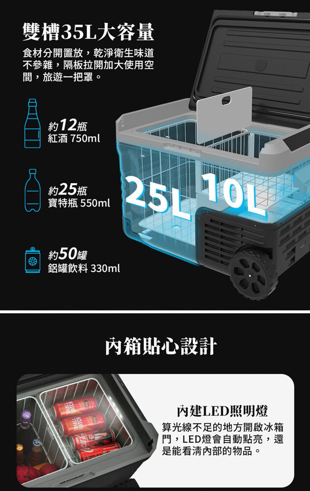 具有冷藏/冷凍功能,溫控範圍可調節至-20℃至20℃。