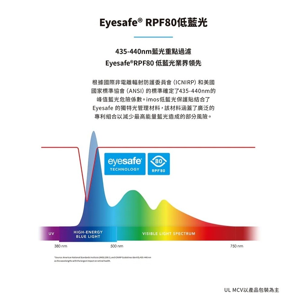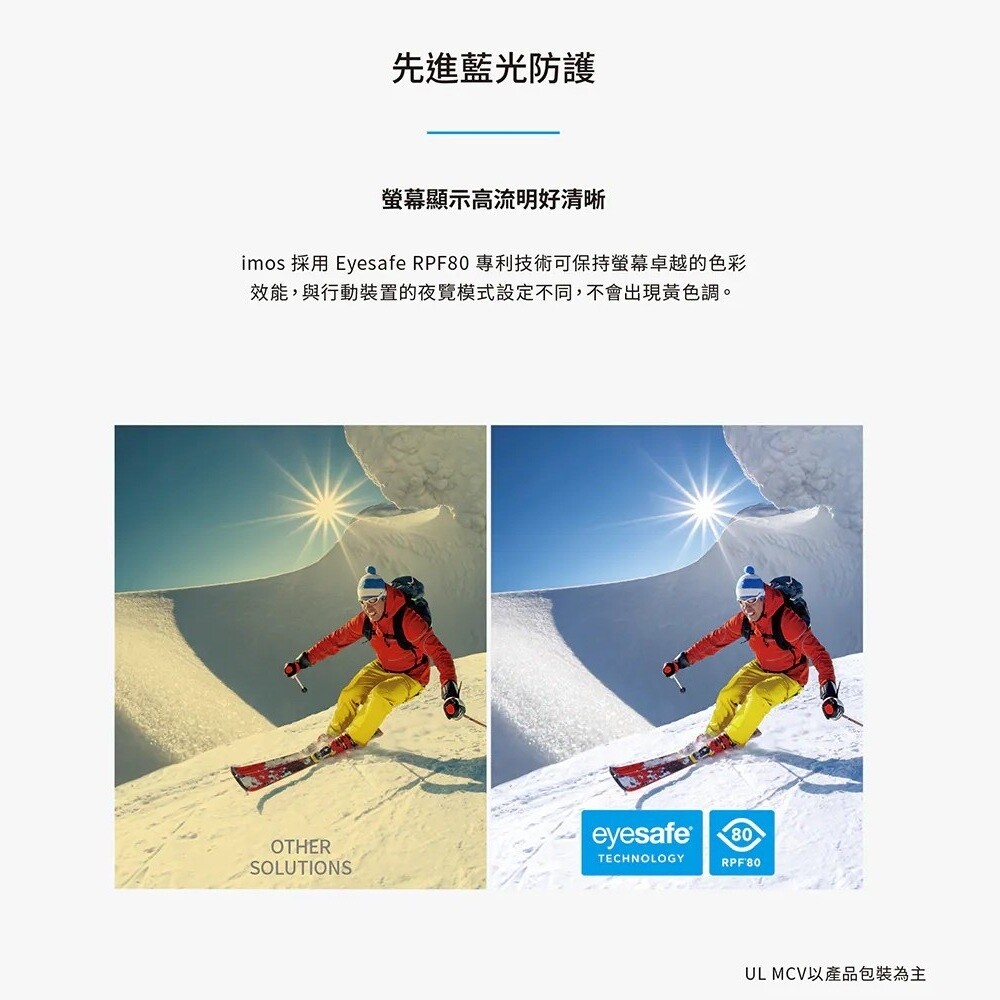 ◆ imos是第一家獲得美國 Eyesafe 公司授權的品牌,擁有 Eyesafe® 低藍光技術專利