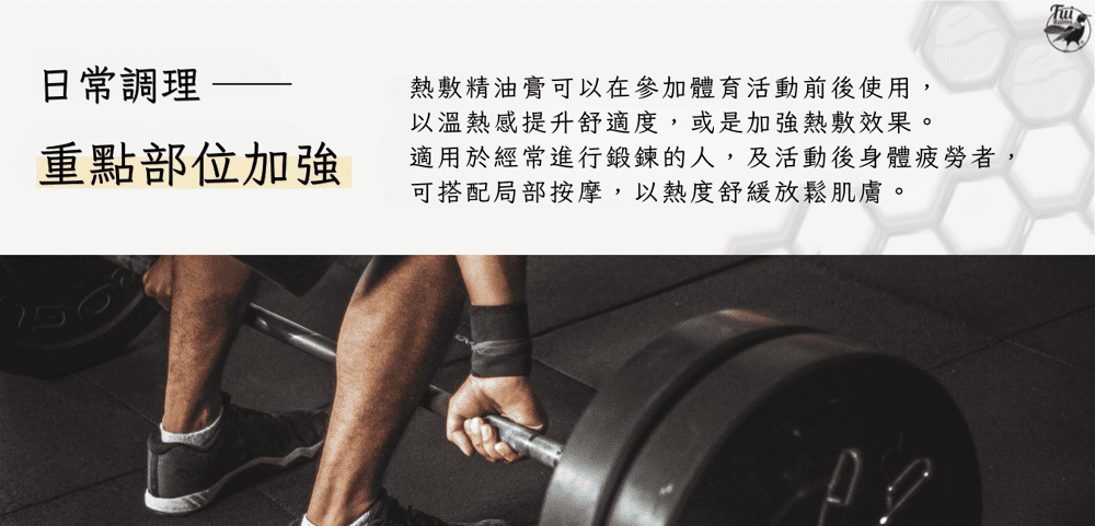 成分:橄欖油、紐西蘭蜂蠟、山金車油、黑胡椒精油、白千層、樟腦、胡椒薄荷、青椒、生薑、冬青精油和薄荷醇與維生素E