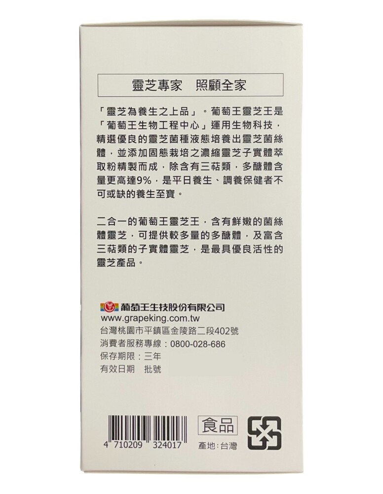 商品名稱】葡萄王 靈芝王270粒(加量超值版)