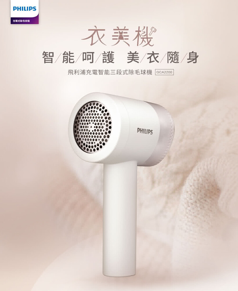 飛利浦充電智能三段式除毛球機GCA2200,擁有最高規格智能3段控速功能,針對不同衣料分段清除毛球,專利6葉浮動刀片,清除效率更提升50%,讓衣服焕然一新、完美出門 !
