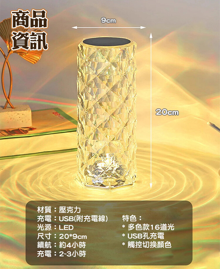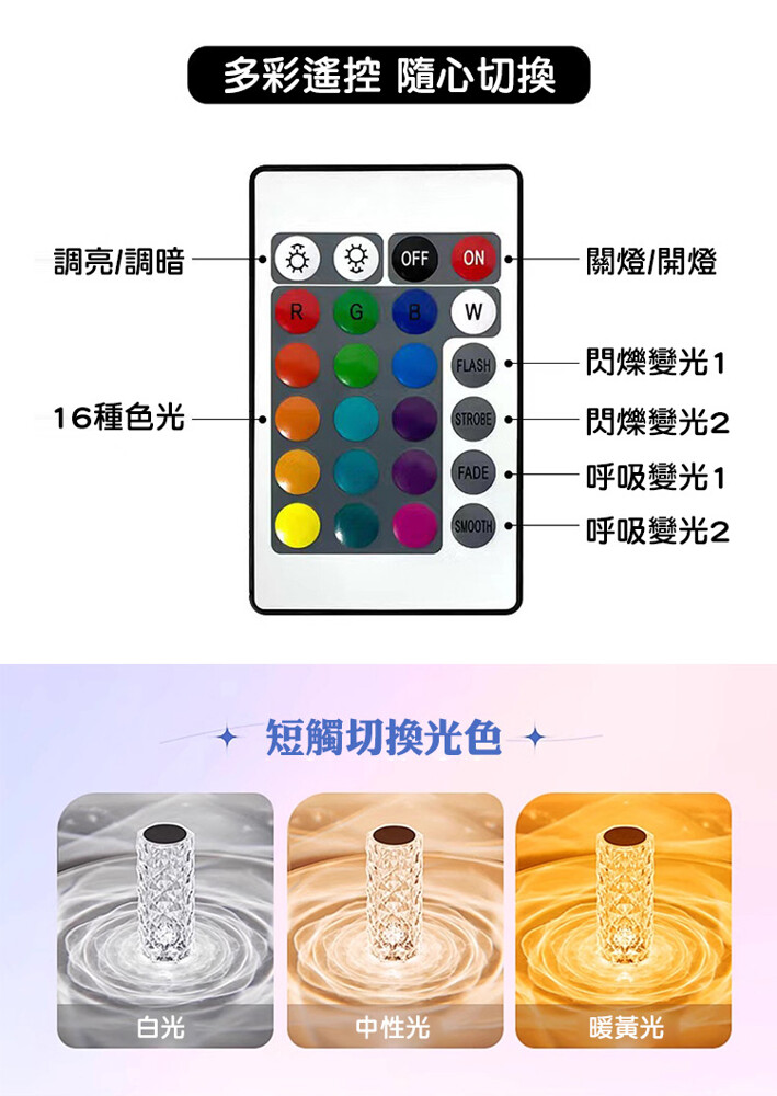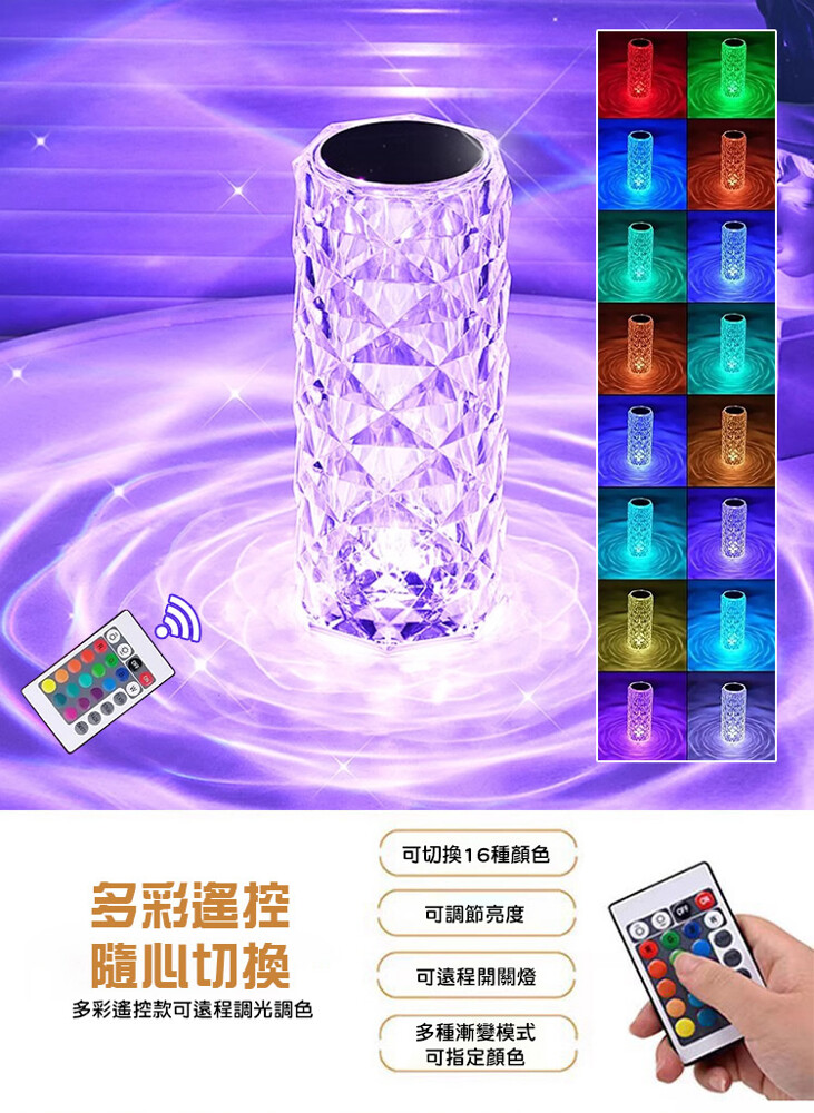 商品名稱:夢幻16色動態變換水波紋水晶燈(E款)