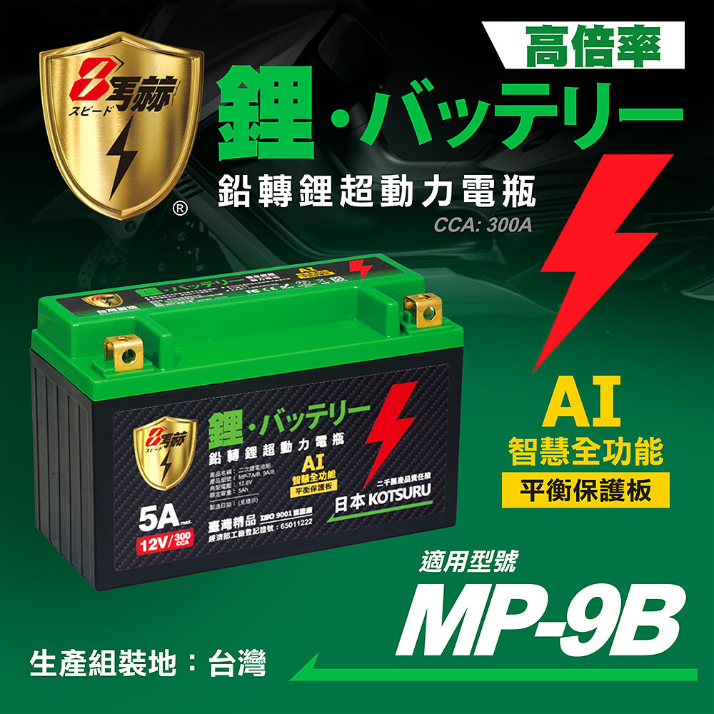8馬赫機車鉛轉鋰動力電瓶,生產組裝臺灣,ISO 9001廠,企業以綠能、減碳、永續、責任為目標,生產超高倍率電池,採用最新研發奈米高倍率電芯、能量密度高、重量最輕、電力強勁、啟動電流最強;容量大,使用時間長,為最強悍的綠色能源。