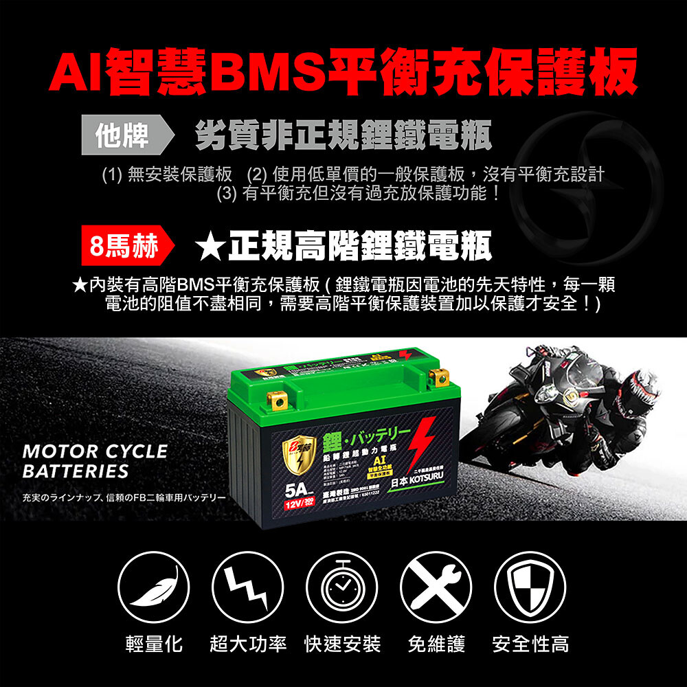 8馬赫機車鉛轉鋰動力電瓶,生產組裝臺灣,ISO 9001廠,企業以綠能、減碳、永續、責任為目標,生產超高倍率電池,採用最新研發奈米高倍率電芯、能量密度高、重量最輕、電力強勁、啟動電流最強;容量大,使用時間長,為最強悍的綠色能源。