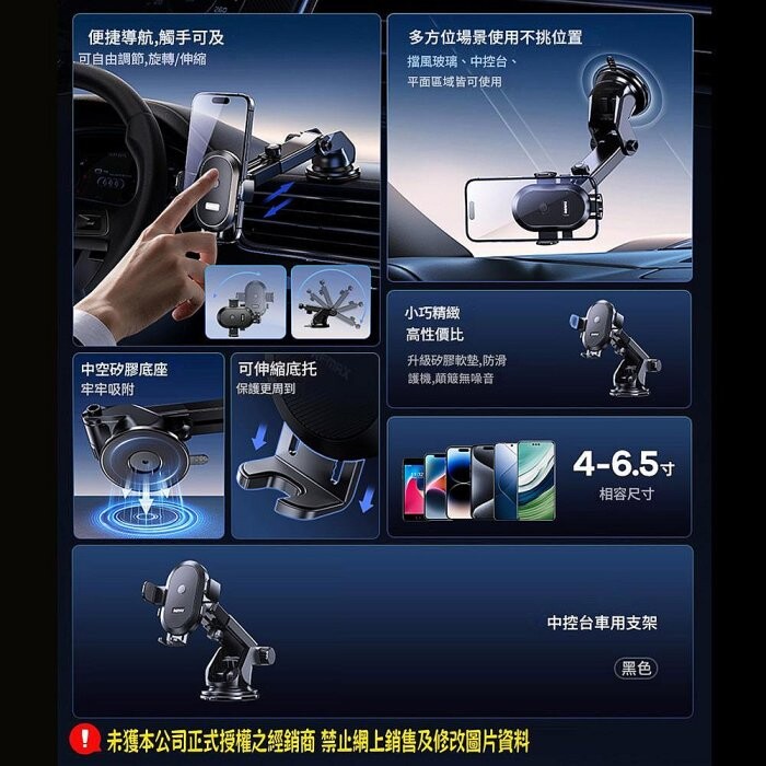 摩比亞 REMAX 中控台車載支架,以穩定、便捷和多功能為設計核心,為駕駛者提供安全穩固的手機支撐,讓行車體驗更加舒適安心。