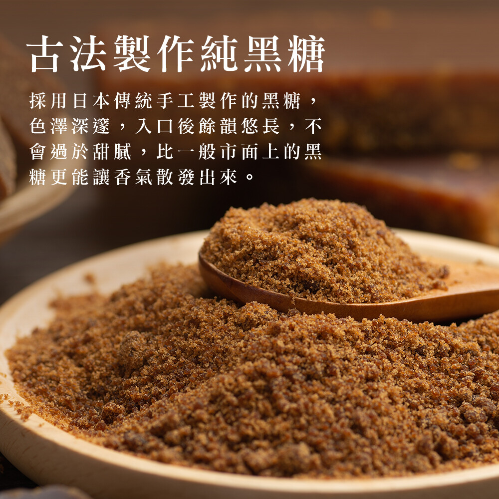 ✔️ 日本沖繩手工黑糖:甜味溫潤,香氣濃郁,帶有獨特的風味層次。