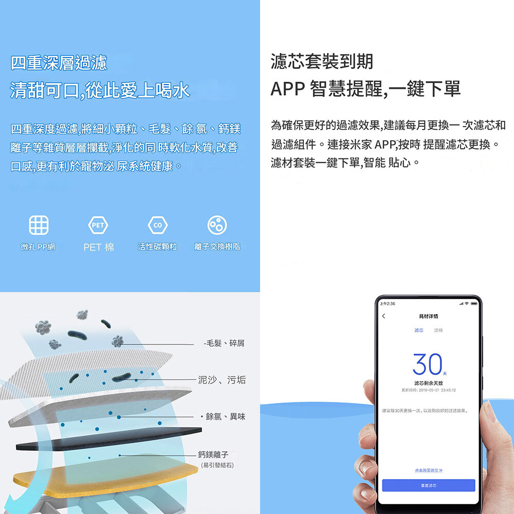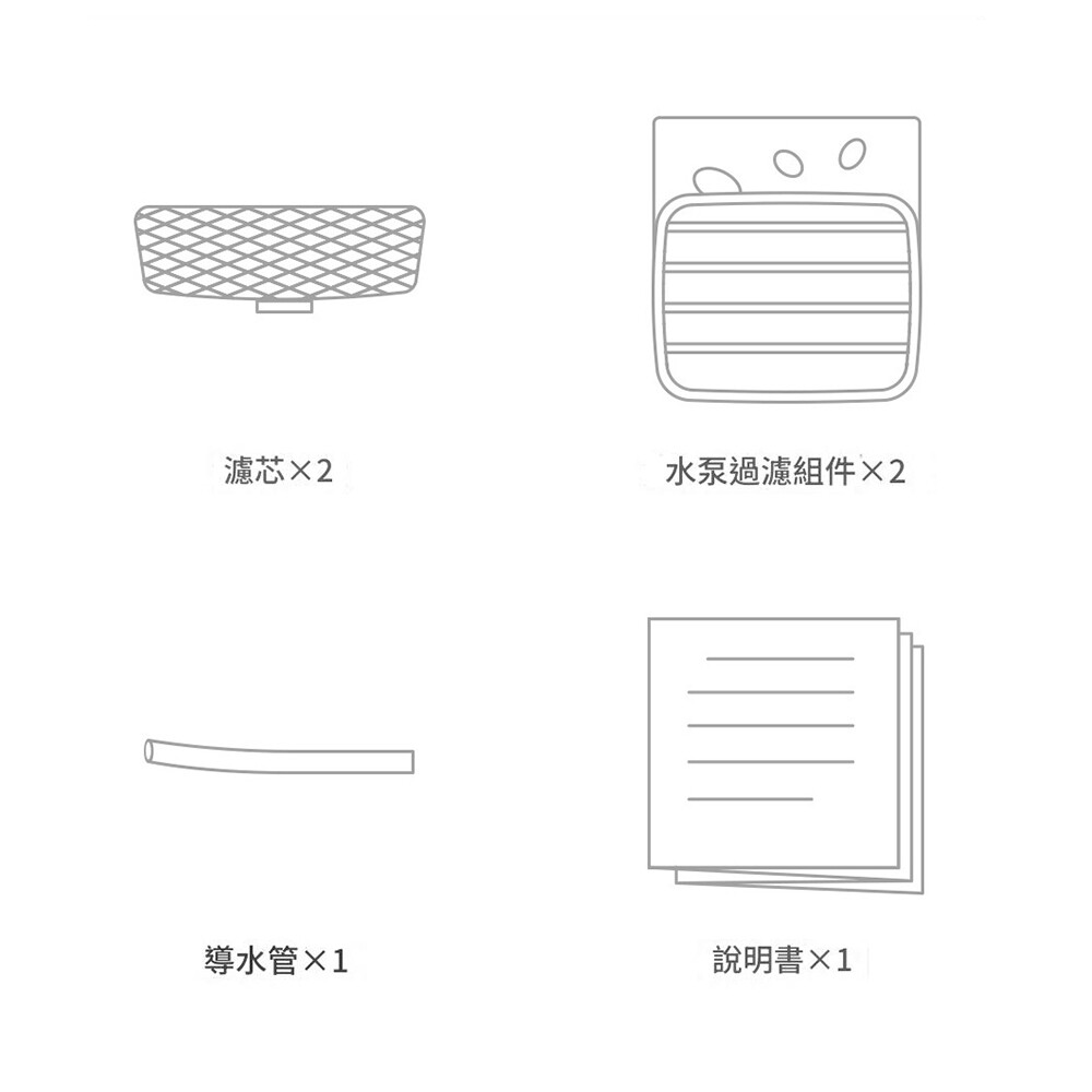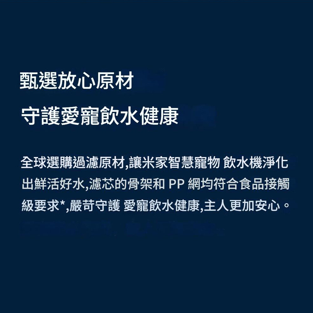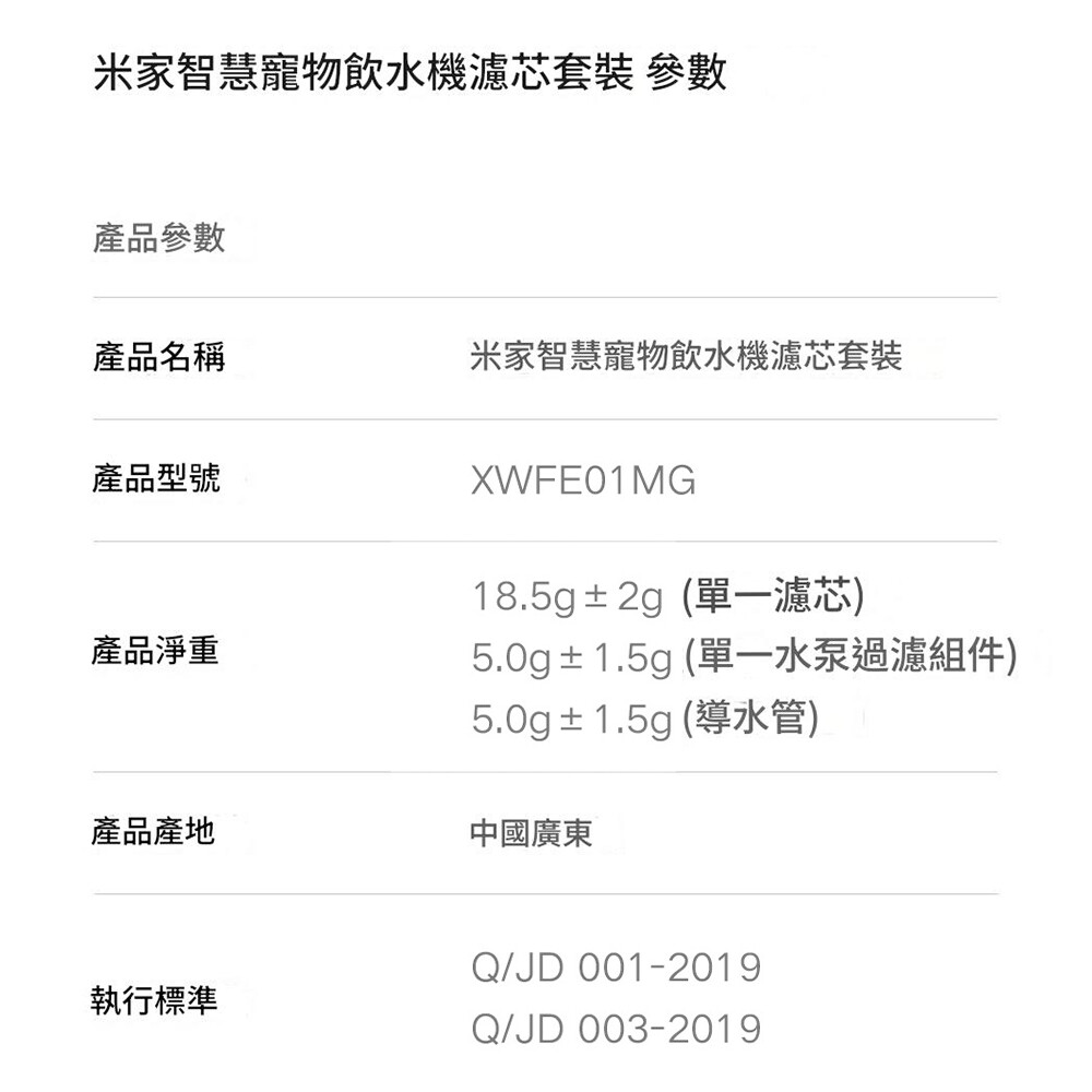 米家智慧寵物飲水機濾芯套裝 產品名稱:米家智慧寵物飲水機濾芯套裝 產品型號:XWFE01MG 產品淨重: 18.5g±2g(單一濾芯) 5.0g±1.5g(單一水泵過濾組件) 5.0g±1.5g(導水管)